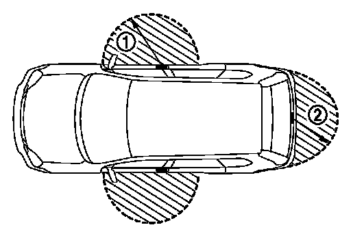 The outside key antenna detection area of door lock/unlock function is in the range of approximately 80 cm (31.50 in) surrounding the driver and passenger door handles (1). However, this operating range depends on the ambient conditions.
