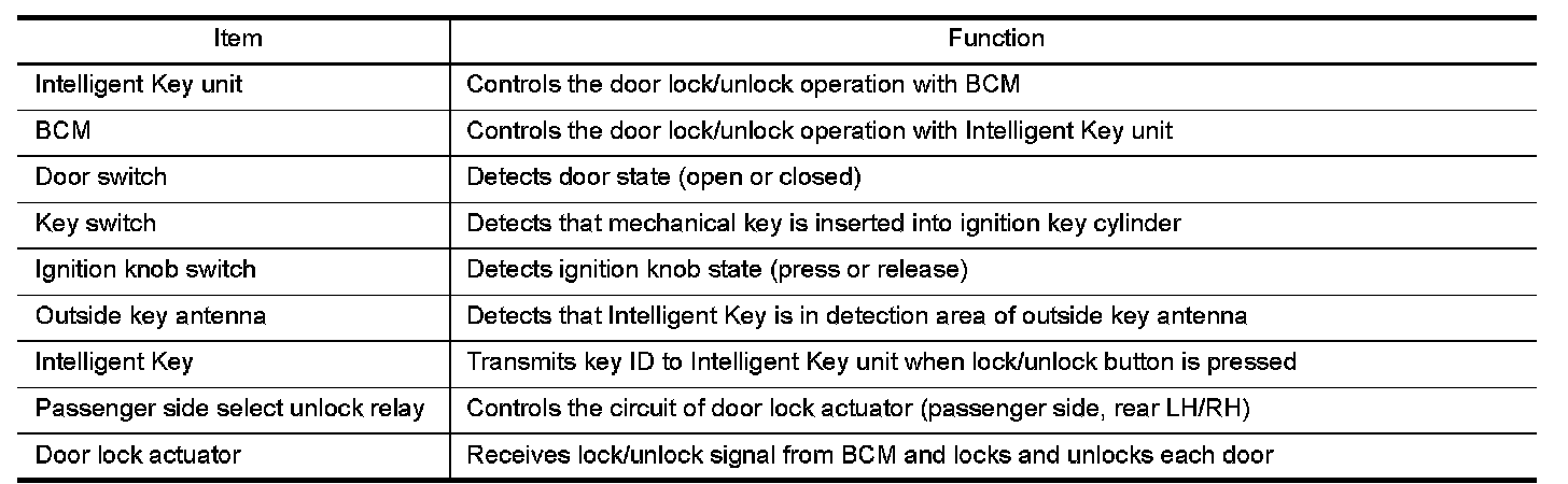 REMOTE KEYLESS ENTRY FUNCTION : Component Description