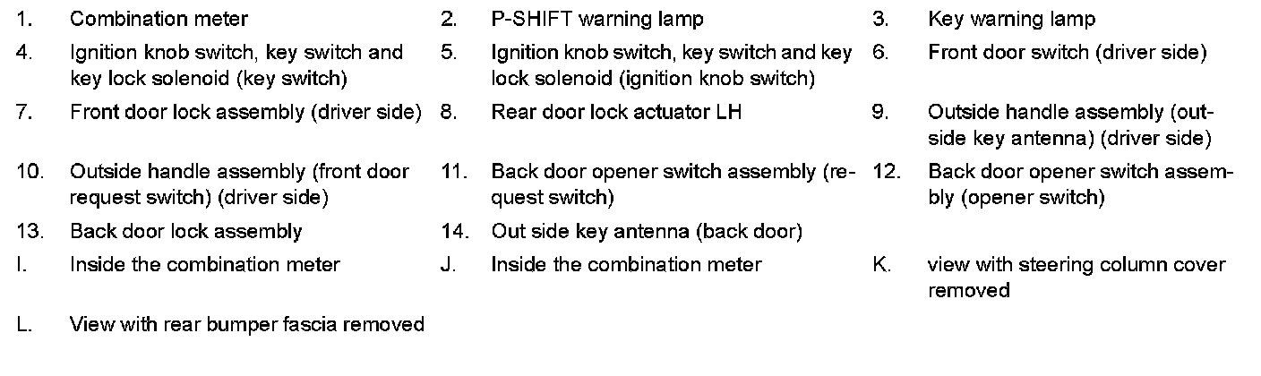 DOOR LOCK FUNCTION : Component Parts Location