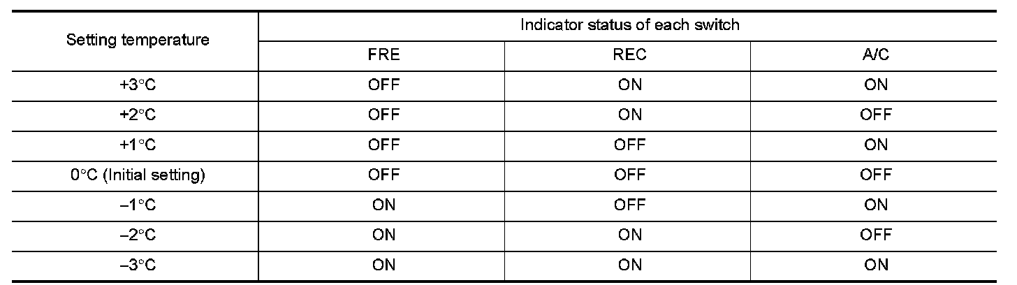 4.When intake switch is pressed, temperature shifts in following order: 0�C --> +1�C --> +2�C --> +3�C --> -3�C --> -2�C --> -1�C --> return to 0�C.