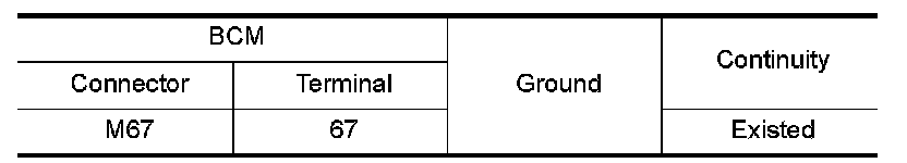 Check continuity between BCM harness connector and the ground.