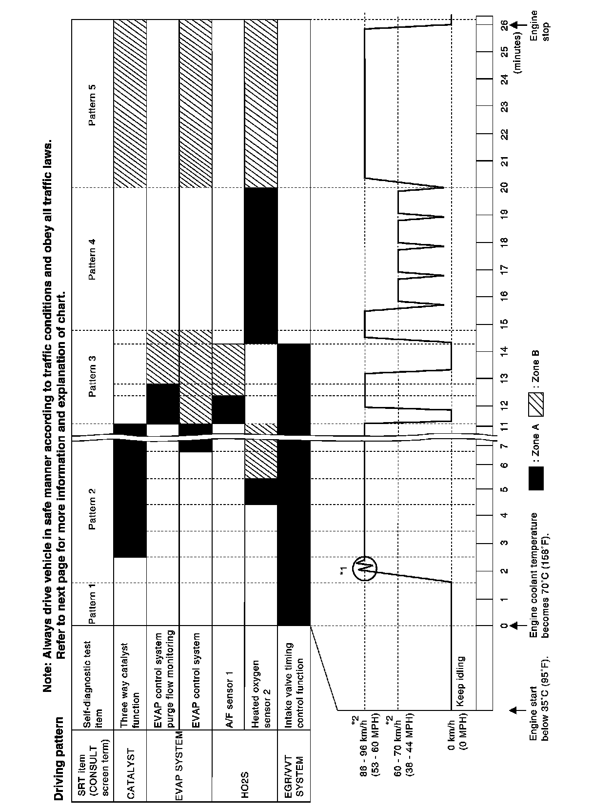*1: Depress the accelerator pedal until vehicle speed is 90 km/h (56 MPH), then release the accelerator pedal and keep it released for more than 10 seconds. Depress the accelerator pedal until vehicle speed is 90 km/h (56 MPH) again.