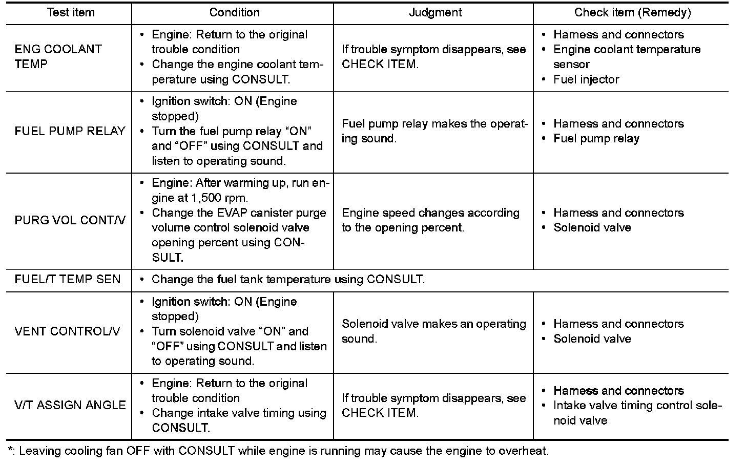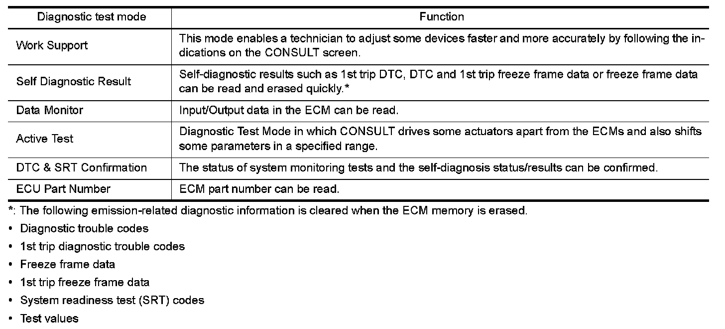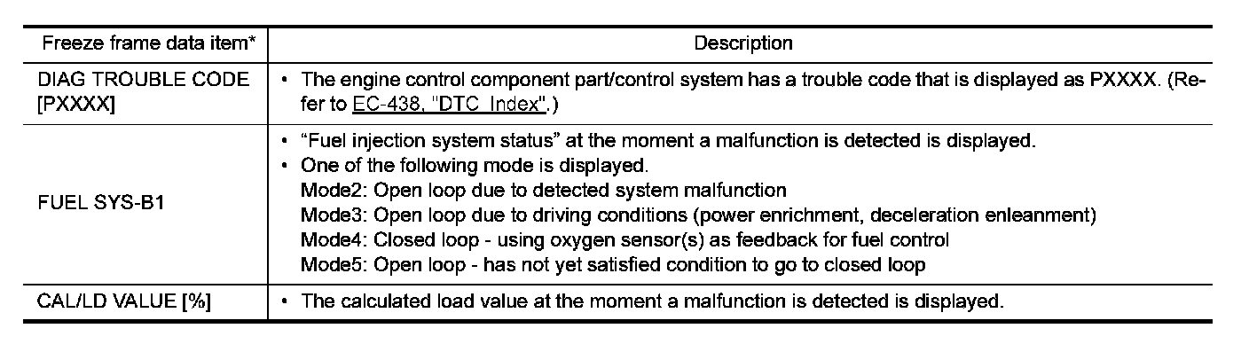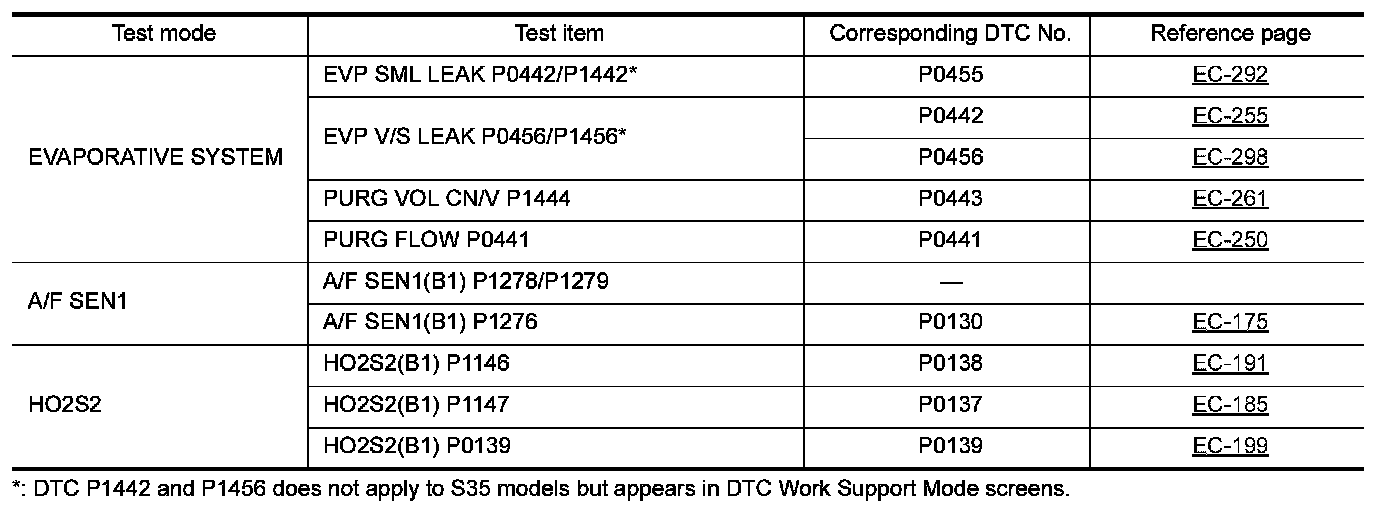 Regarding items of DTC and 1st trip DTC, refer to "DTC Index" Testing and Inspection.)