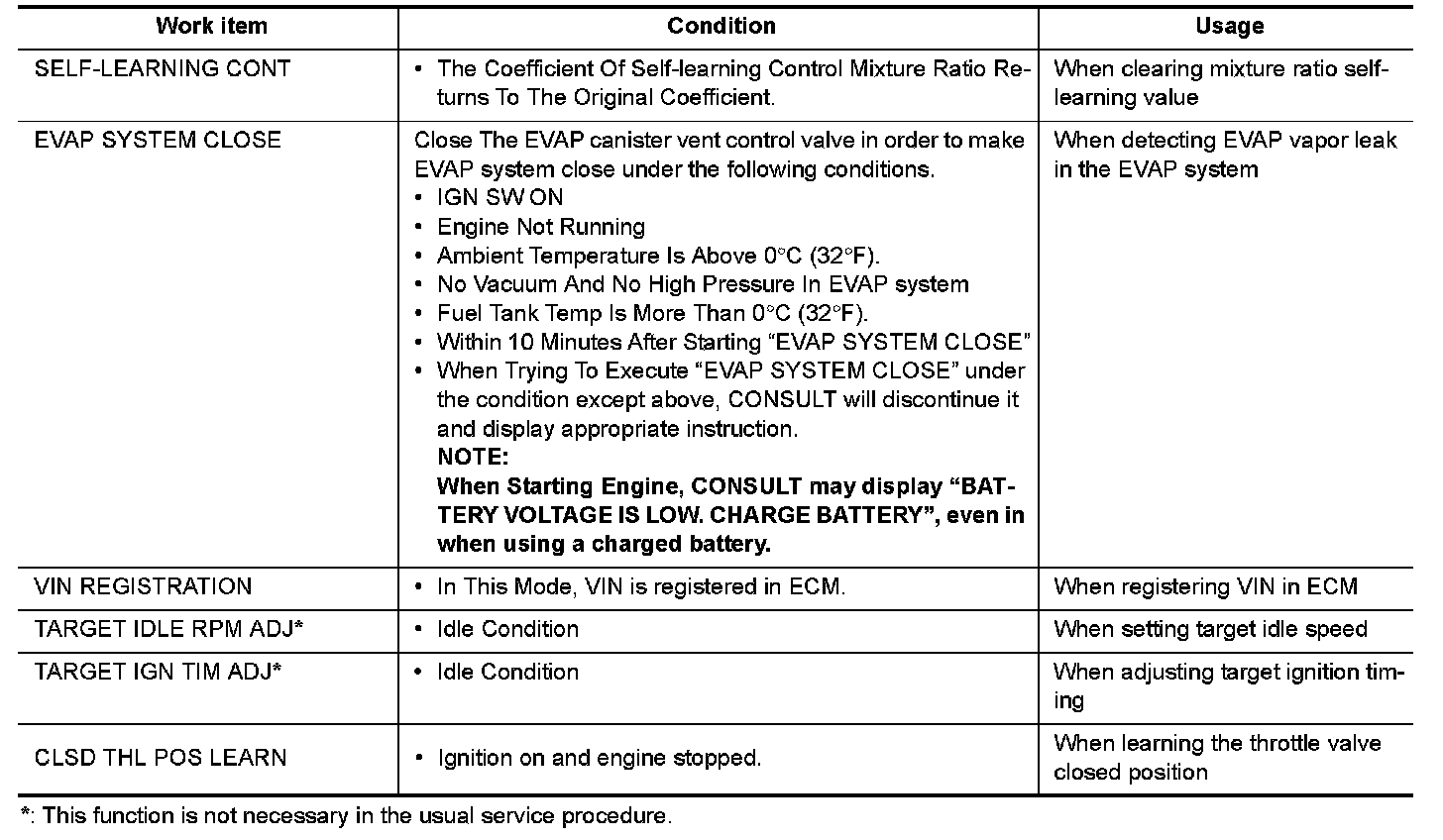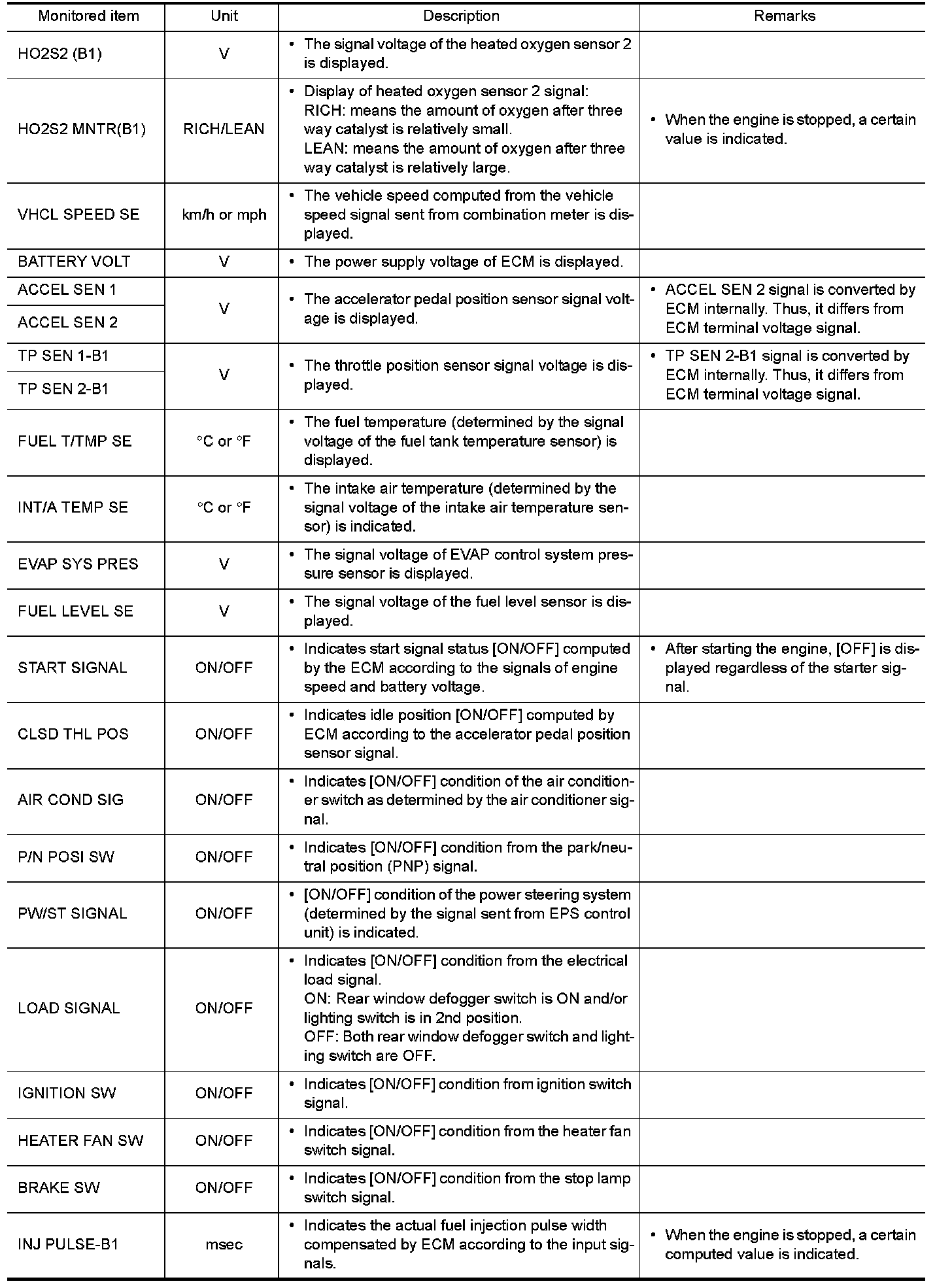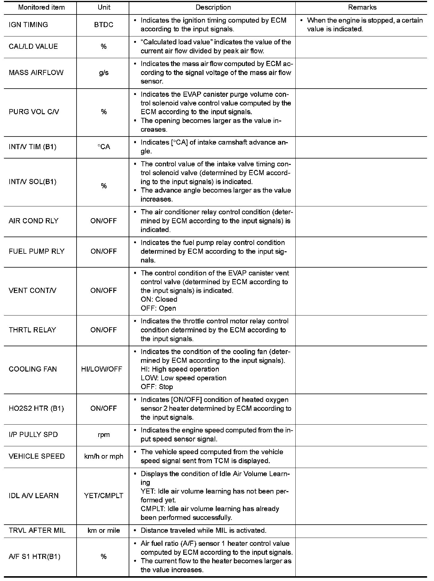 The following table includes information (items) inapplicable to this vehicle. For information (items) applicable to this vehicle, refer to CONSULT display items.