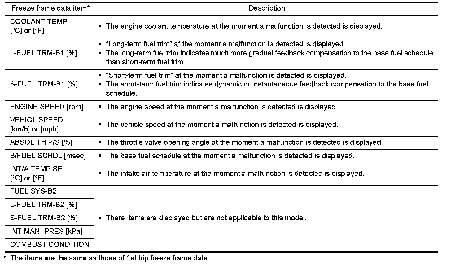 Freeze Frame Data and 1st Trip Freeze Frame Data