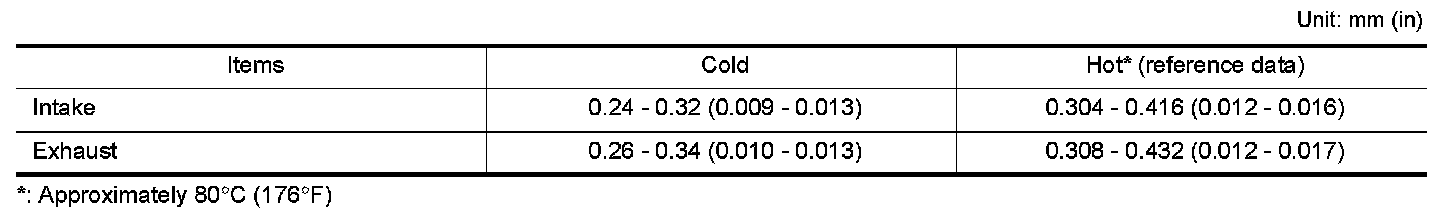VALVE CLEARANCE