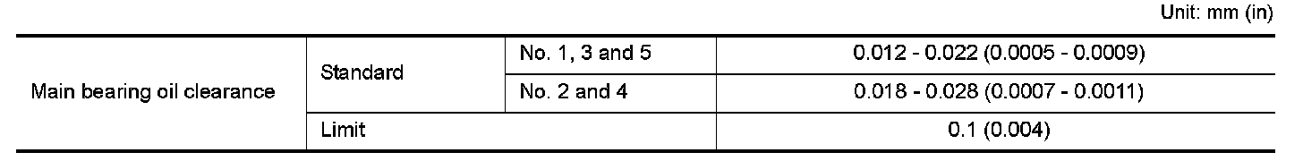 MAIN BEARING OIL CLEARANCE