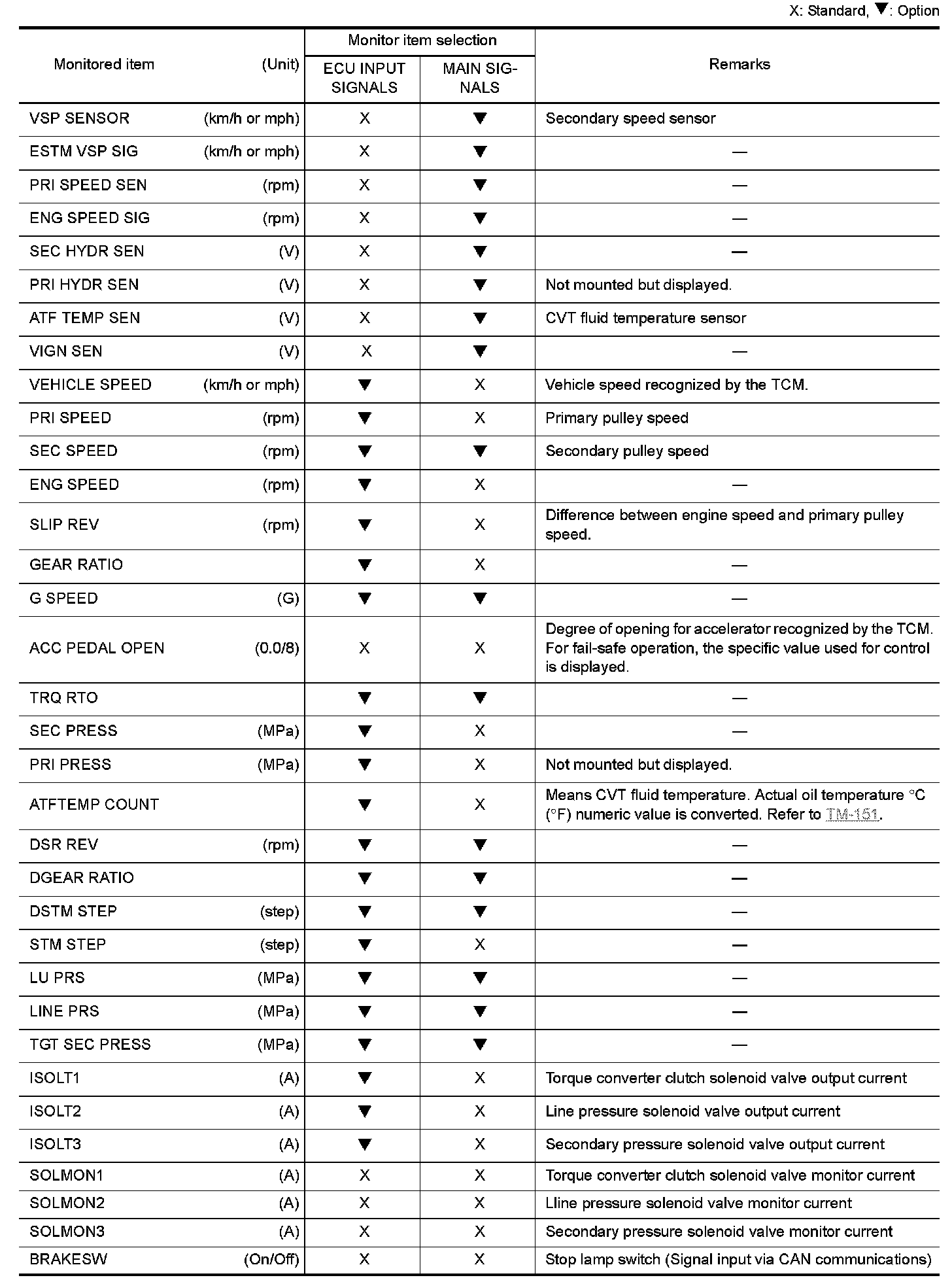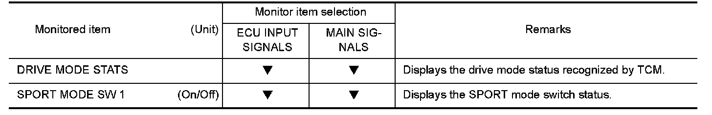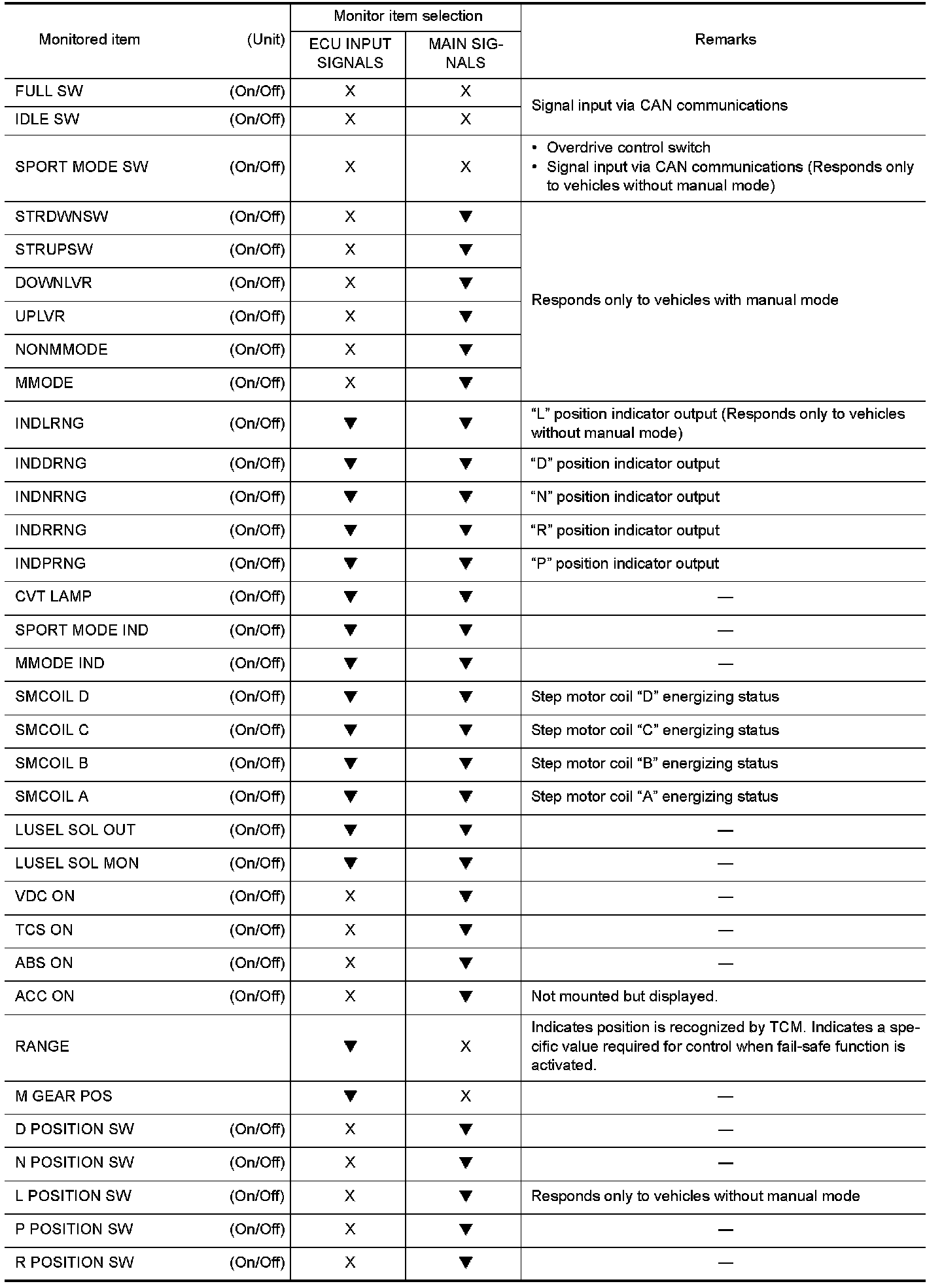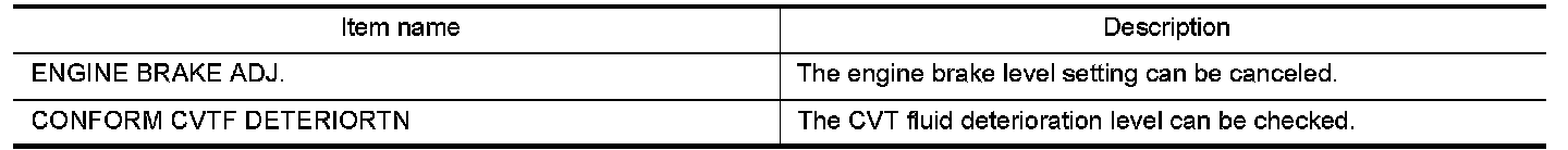 The following table includes information (items) inapplicable to this vehicle. For information (items) applicable to this vehicle, refer to CONSULT display items.