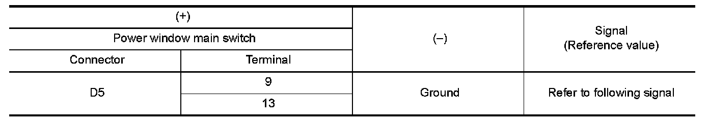 2.Check signal between power window main switch harness connector and ground with oscilloscope.