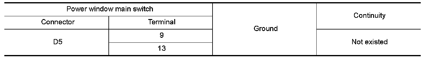 YES- Replace power window main switch. Refer to "Removal and Installation" Removal And Installation.