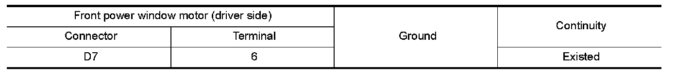 2.Check continuity between front power window motor (driver side) harness connector and ground.