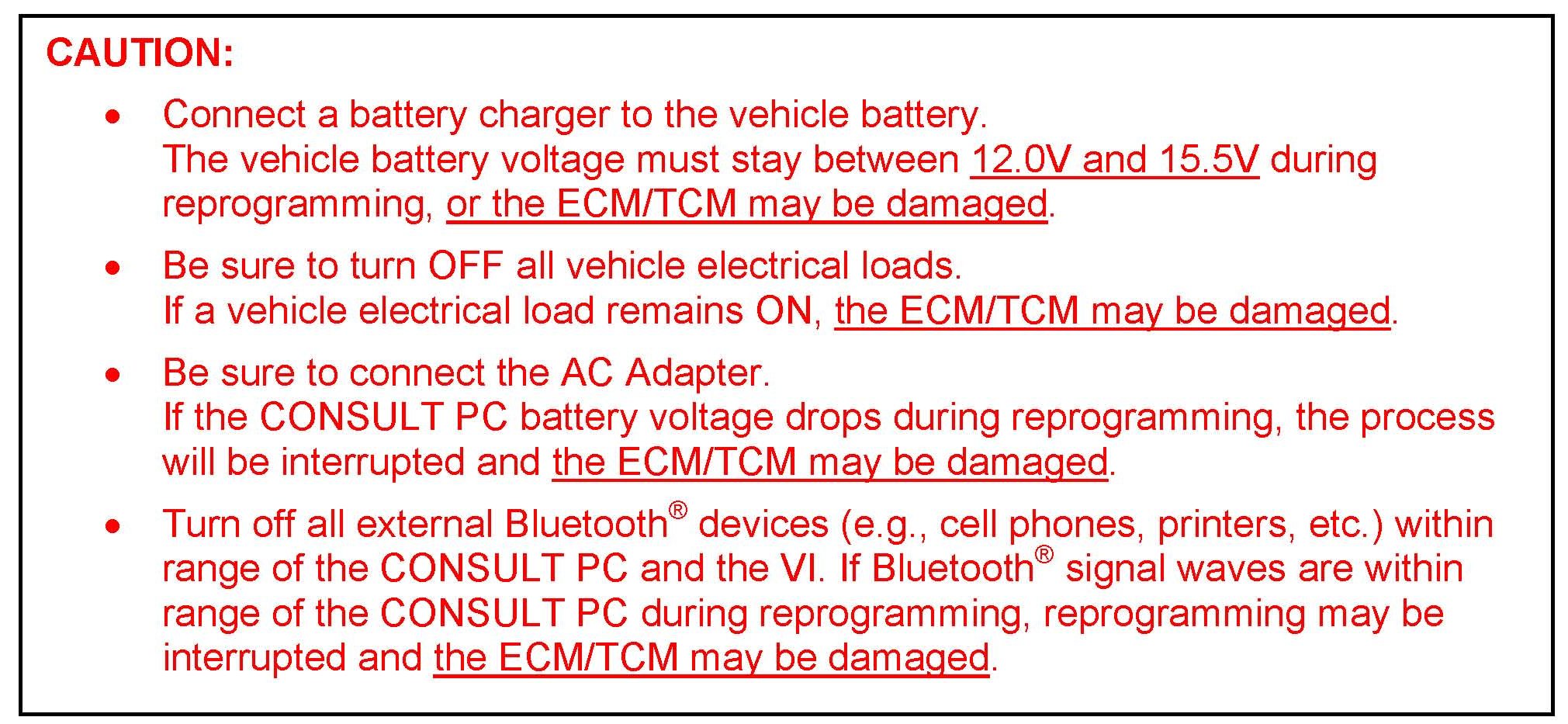 ^ This procedure will require reprogramming of the ECM first, and for some vehicles the 1CM second, which means most steps in this procedure may need to be done twice.^ Most instructions for reprogramming with CONSULT-III plus (C-III plus) are displayed on the CONSULT PC screen.