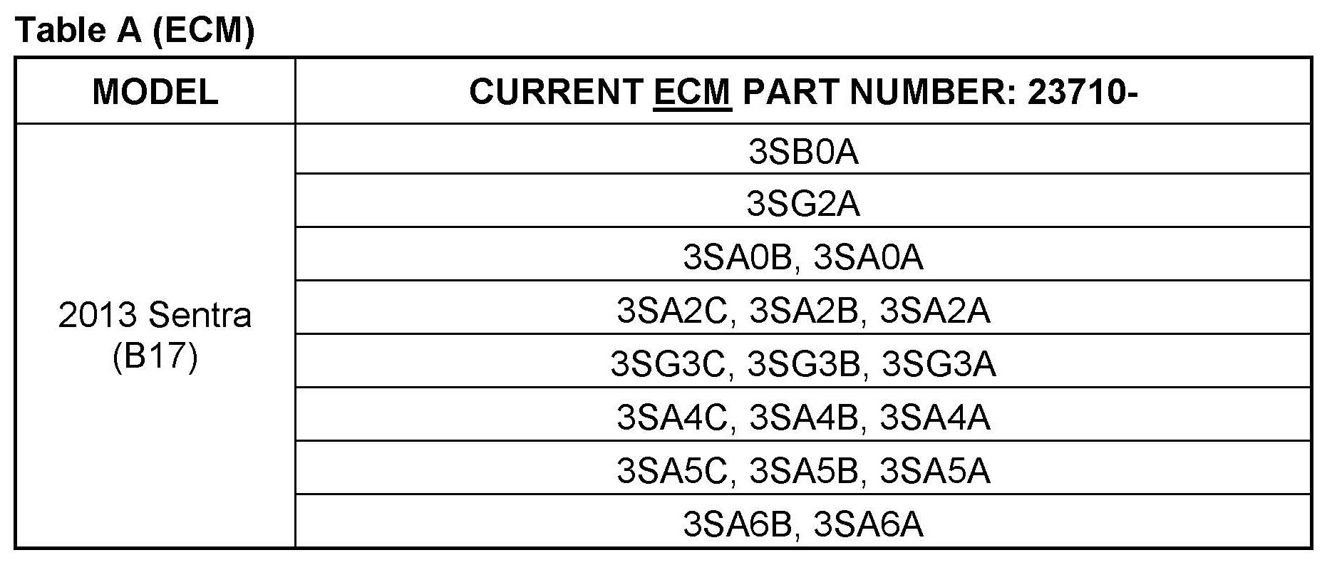 Table A (ECM)
