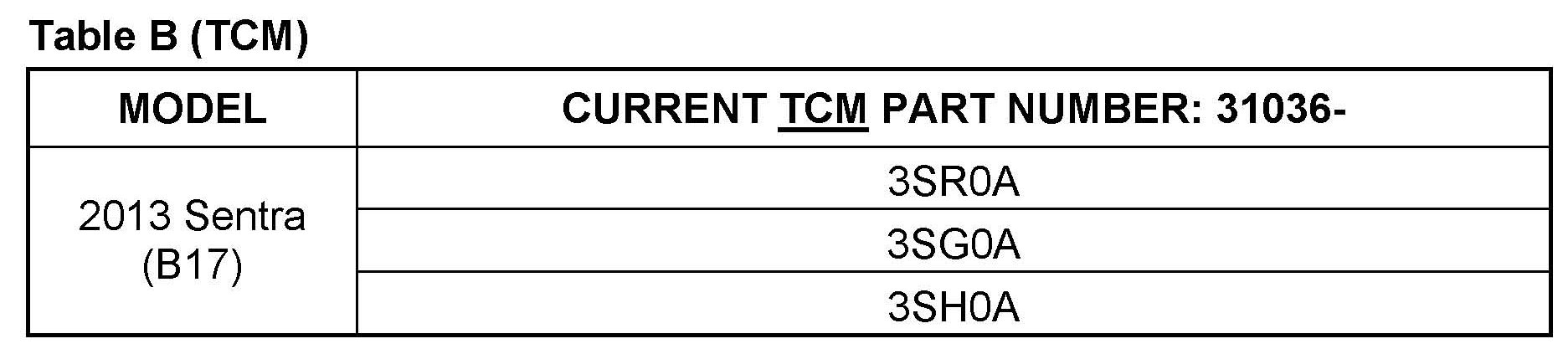 B. Compare the P/N you wrote down to the numbers in the Current ECM (or TCM) Part Number column in Table A (or Table B).