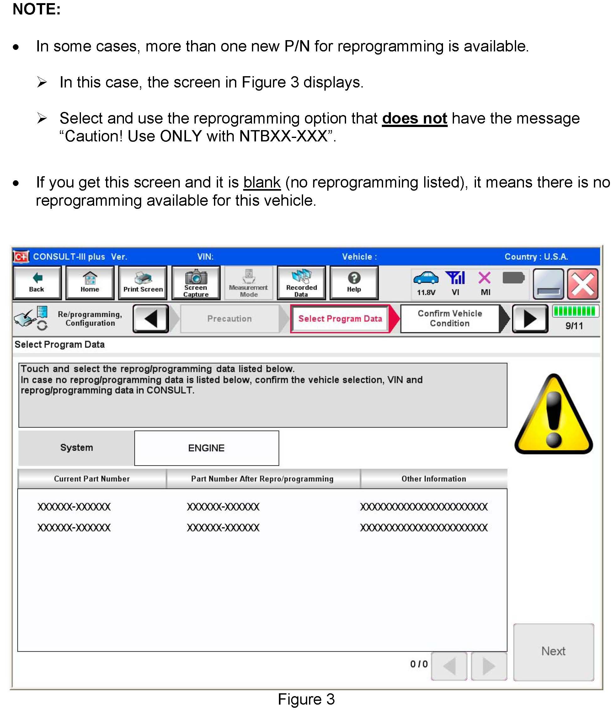 ^ If you are not familiar with the reprogramming procedure, visit the "CONSULT-III plus (C-III plus) Reprogramming" general procedure.