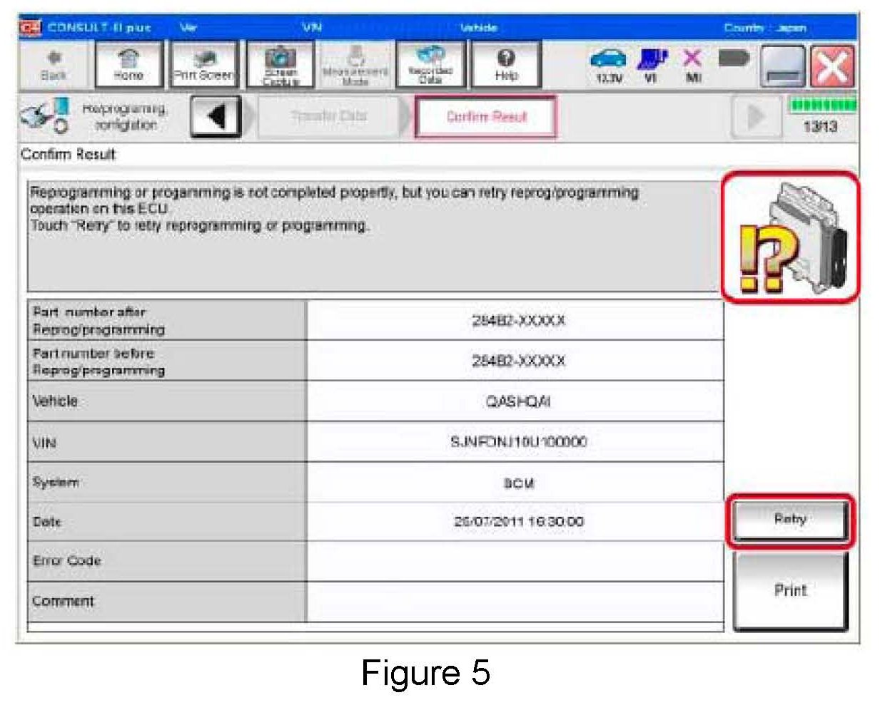 If reprogramming does not complete and the "X" icon displays as shown in Figure 6:
