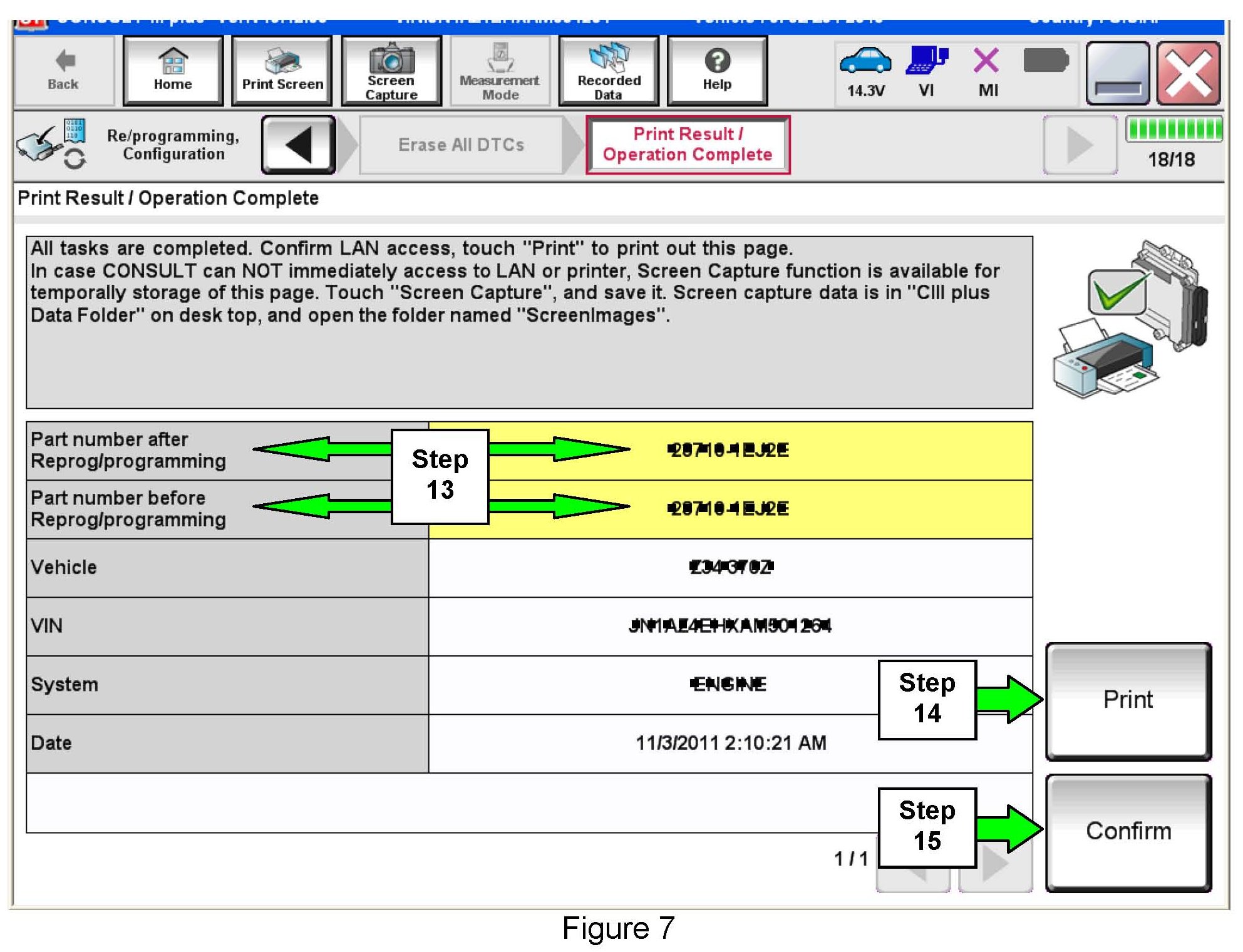 14. Print a copy of this screen (Figure 7) and attach it to the repair order for warranty documentation.