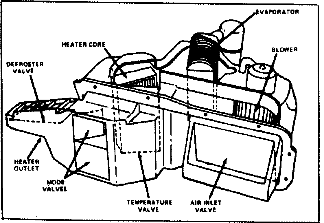 Fig. 18 Heater core & blower motor (w/air conditioning). 88, 98 & Custom Cruiser: