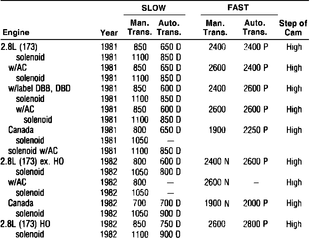 Idle Speed W/O Computer Control - Specifications: