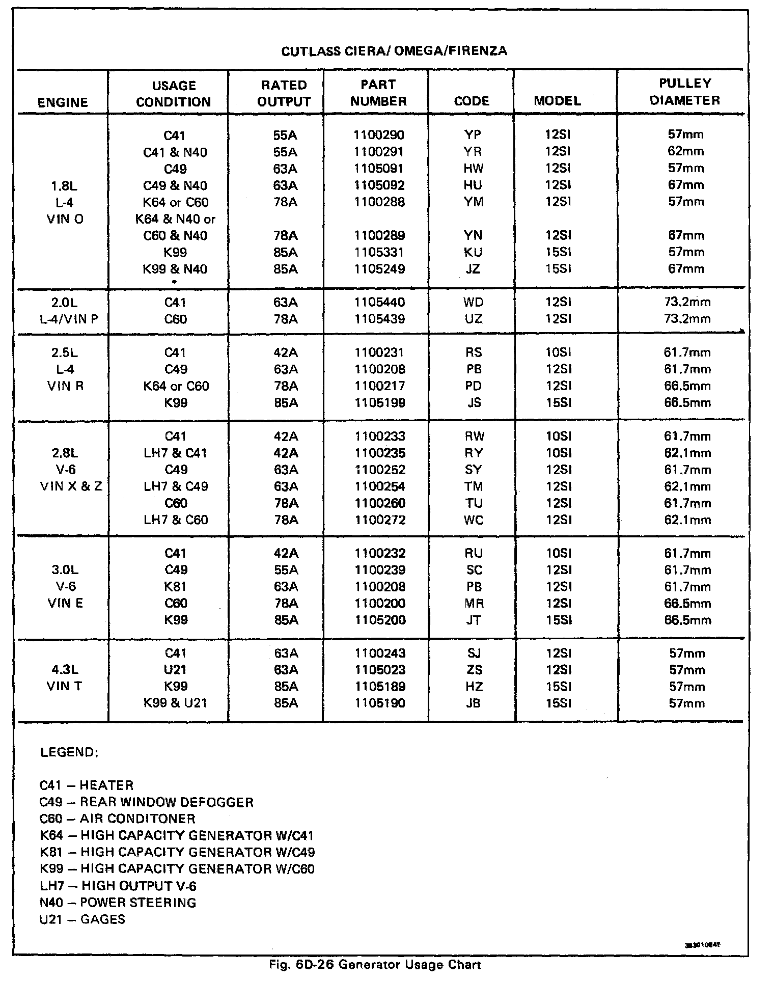 Cutlass Ciera FWD V6-260 4.3L DSL