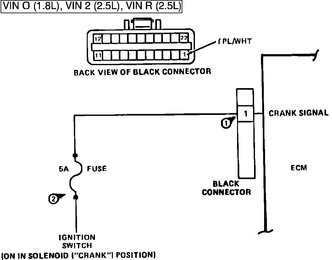 1. Checks for normal (cranking) voltage to terminal "1" of ECM. Test light should be "ON" during cranking.