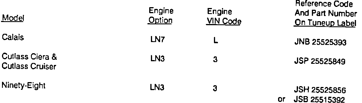 Involved are certain 1985 Calais, Cutlass Ciera, Cutlass Cruiser and Ninety-Eight model vehicles with 3.0L or 3.8L V6 multiport fuel injection engines and Federal Emissions (RPO NA5), from start-of-production through end-ofproduction, as listed below: