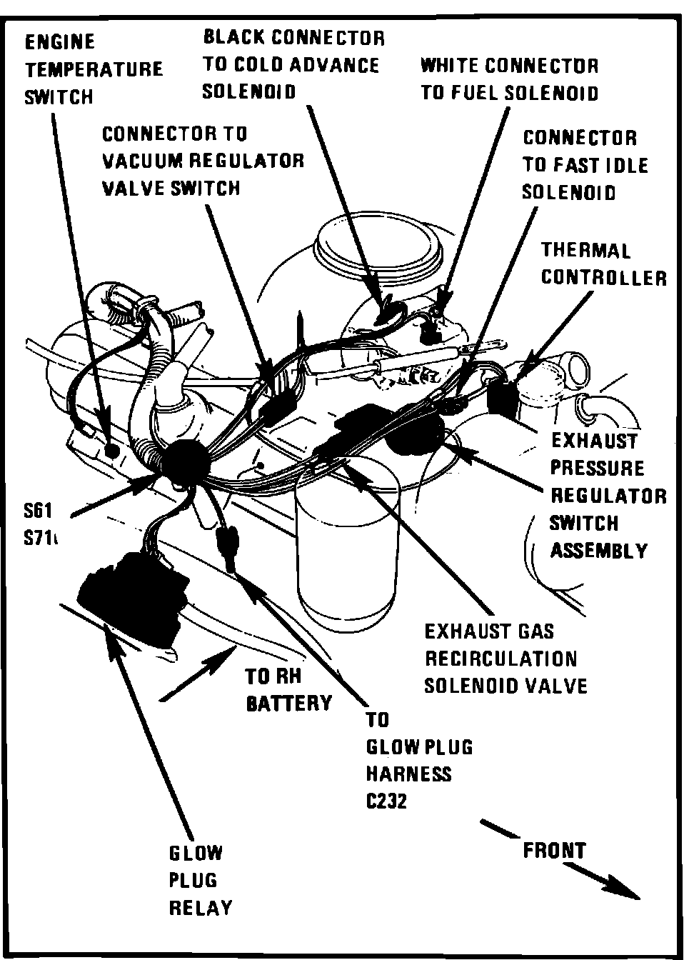Top Front Of Engine Forward Of Fast Idle Solenoid