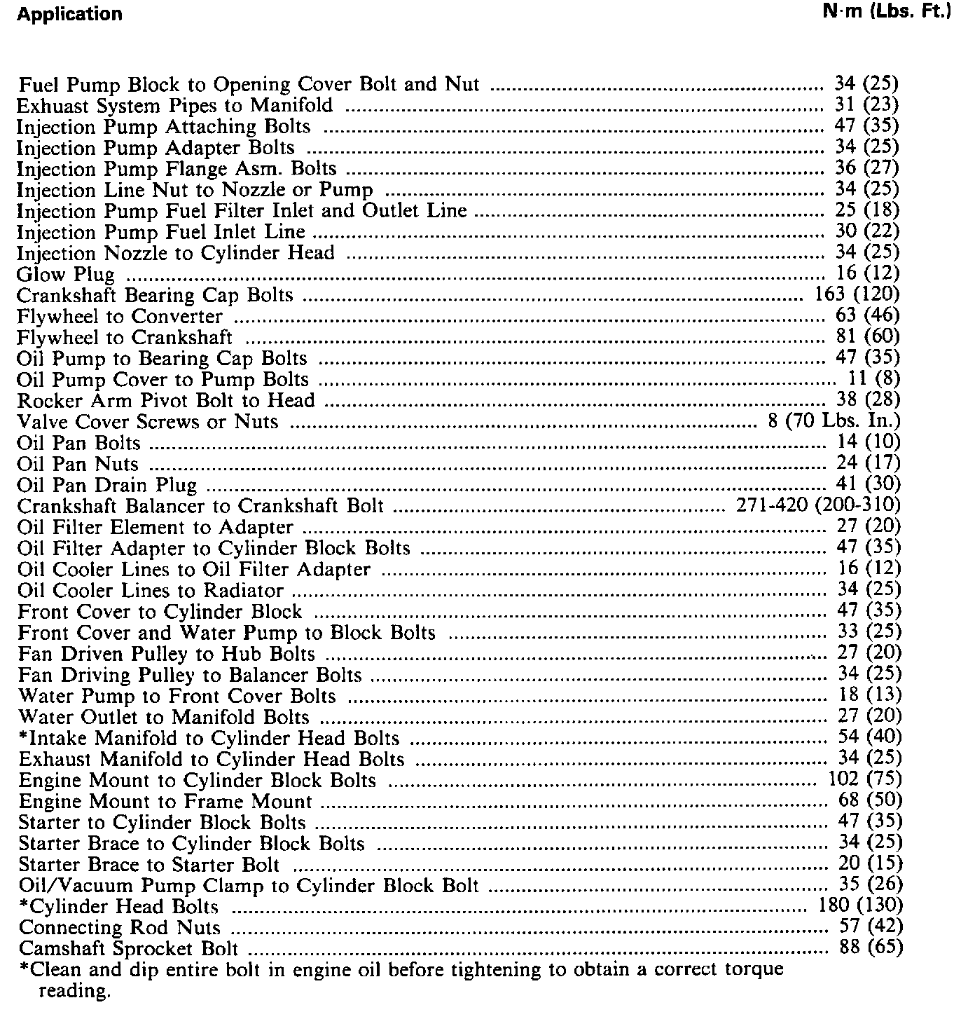 Torque Specifications:
