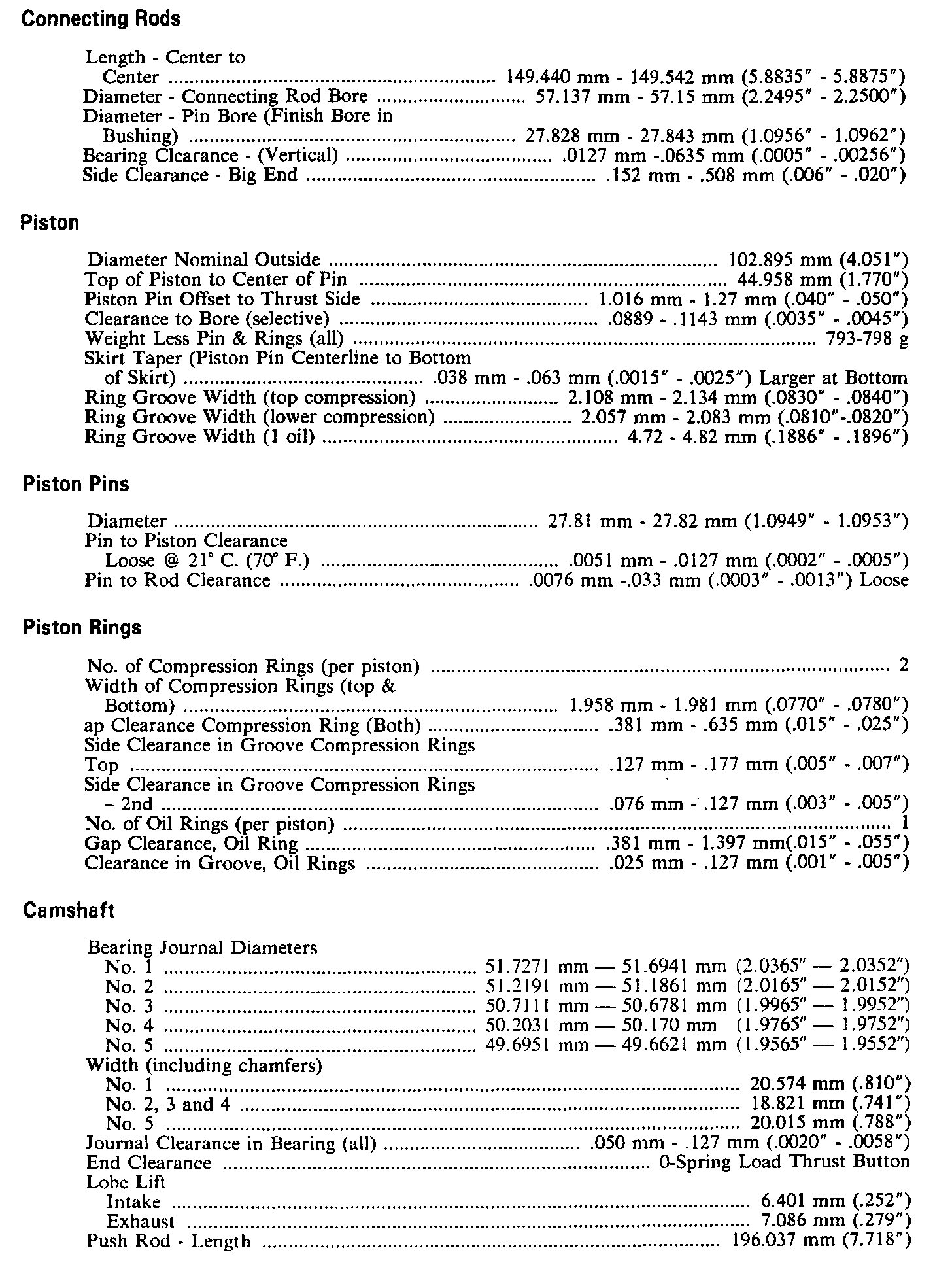 Continued Engine Specifications: