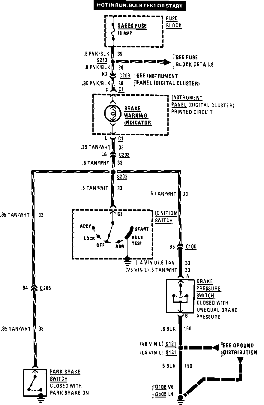Brake Warning System Wiring Circuit: