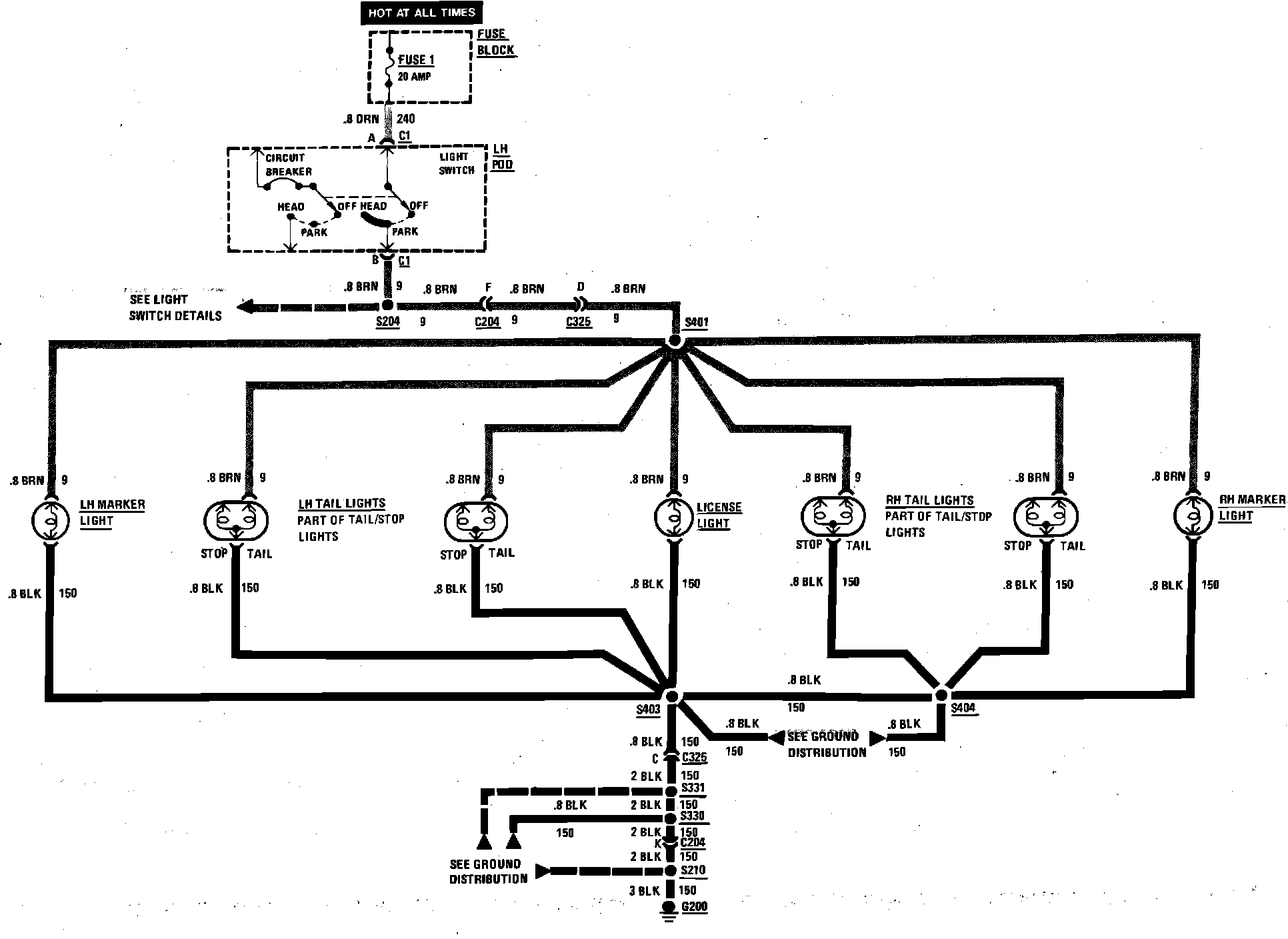 Exterior Lamps Wiring Circuit (License, Rear Marker & Tail):