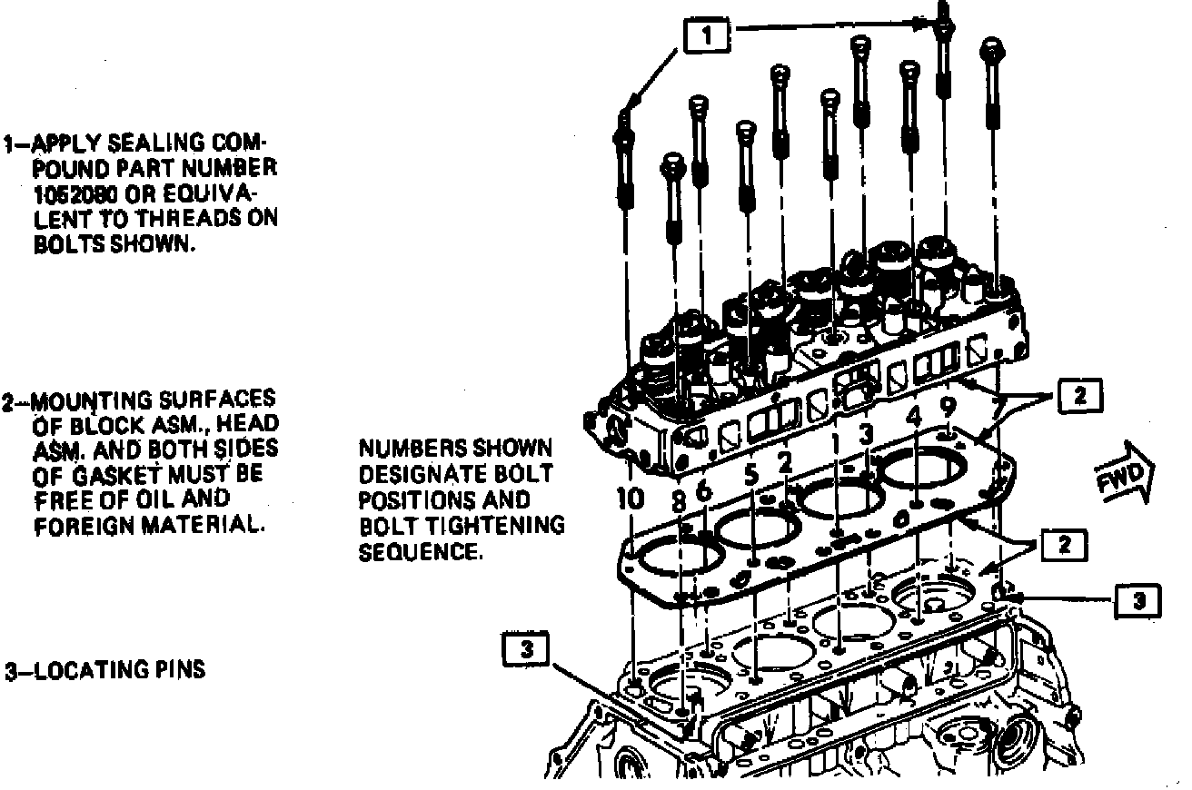 13. Reverse procedure to install. Coat cylinder head bolts with sealer. Torque cylinder head attaching bolts in the following sequence: