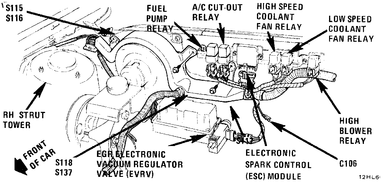 The A/C Cut-Out Relay is located at the front of the dash on the relay bracket.