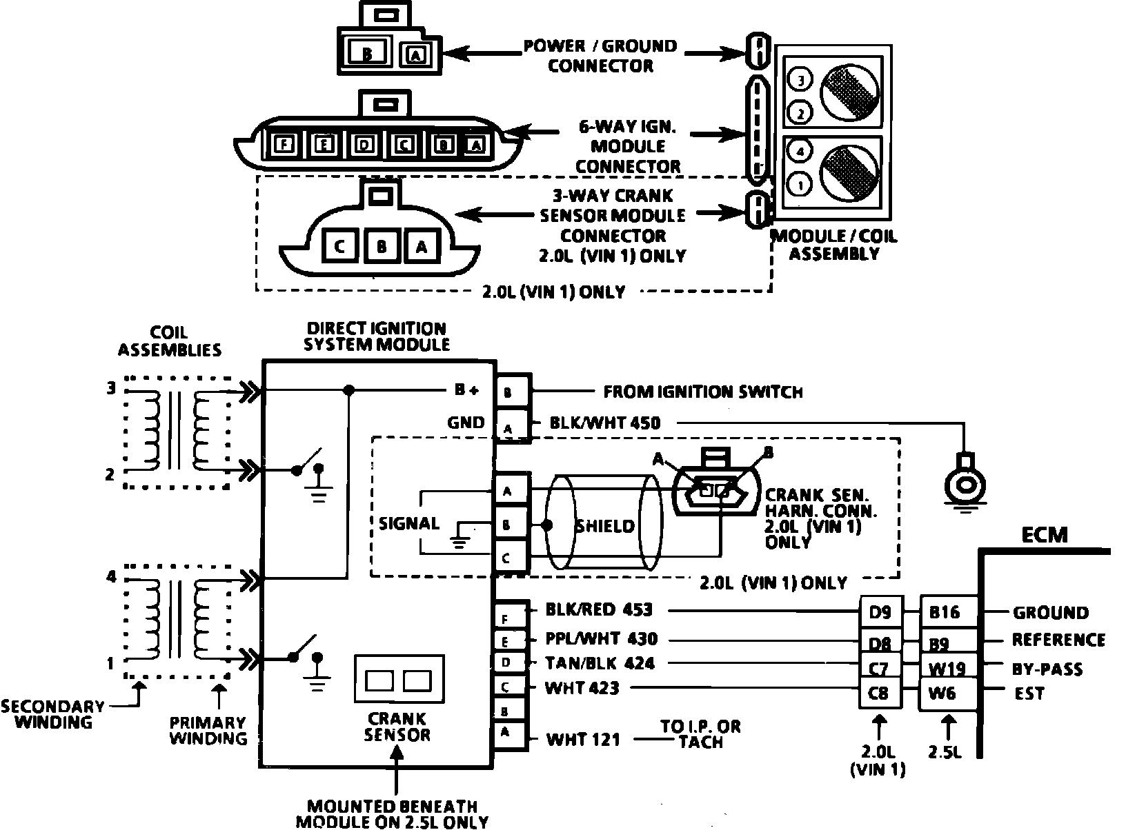 Fig. 1 DIS wiring schematic. 1987 4-121/2.0L Firenza & 1987-88 4-151/2.5L Calais & Cutlass Ciera w/TBI: