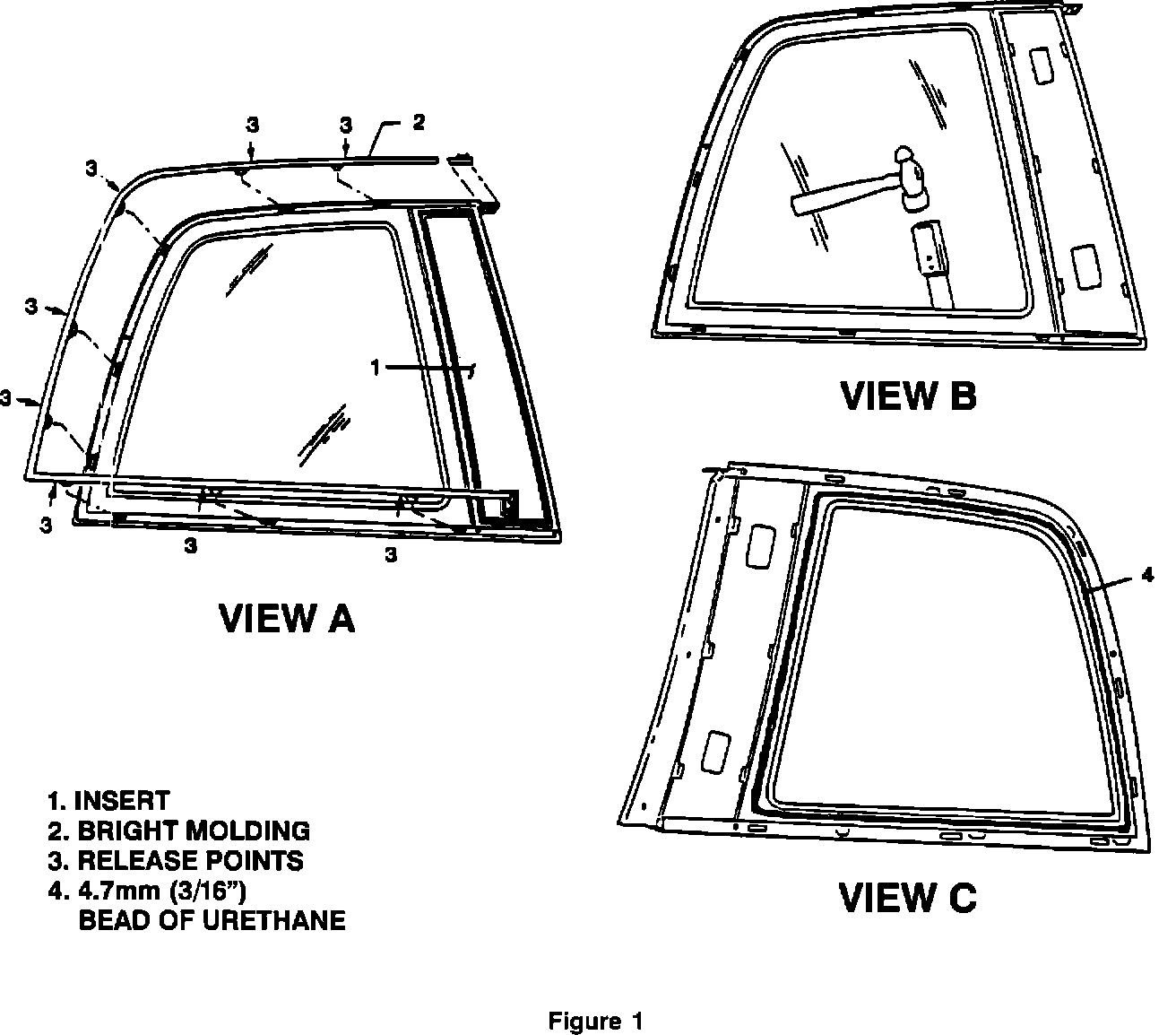 REMOVAL AND REPLACEMENT PROCEDURES FOR QUARTER WINDOW REVEAL MOLDING OR FRAME