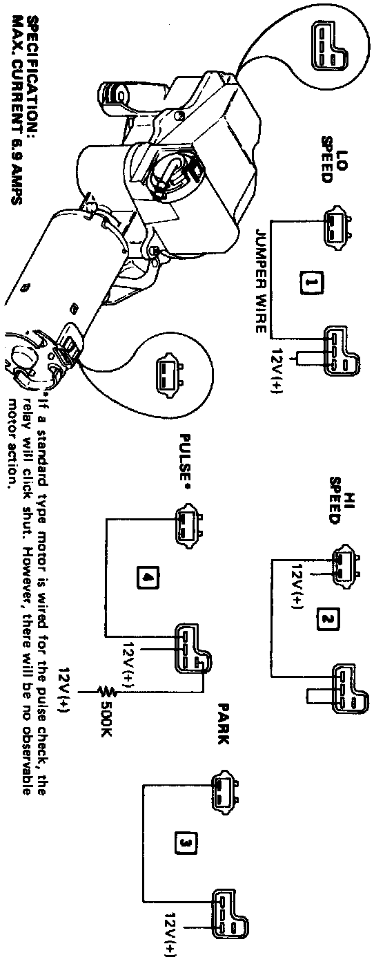 Check motor operation before removing wiper assembly from the car. Disconnect wiring harness from wiper assembly before performing the following checks: