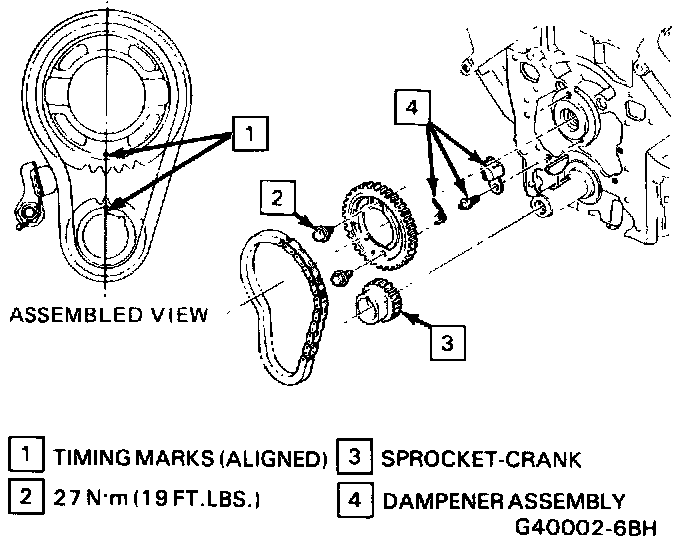 1. With timing chain cover removed, align timing marks on sprockets so that they are as close together as possible.