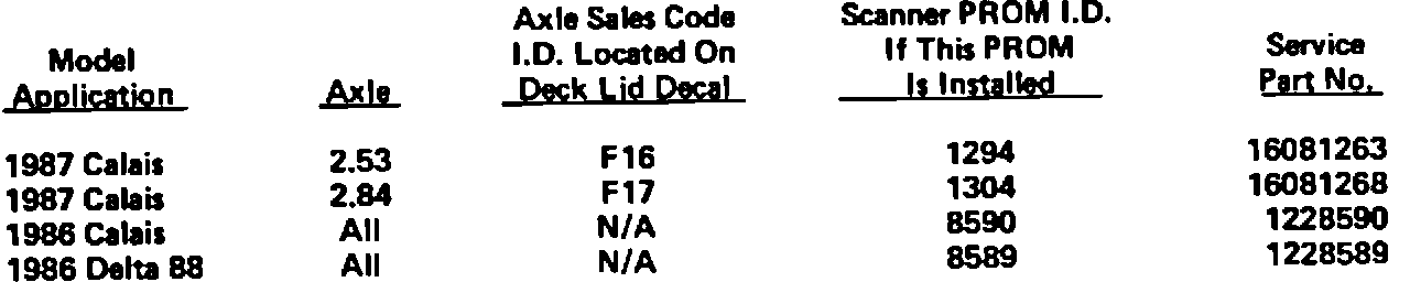 These PROM's are currently available through General Motors Service Parts Operation (GMSPO) under the following part numbers:
