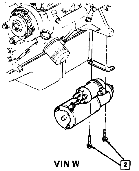 On VIN R, U & 1 engines, remove the nuts/bolts that hold the starter bracket to the starter and engine.