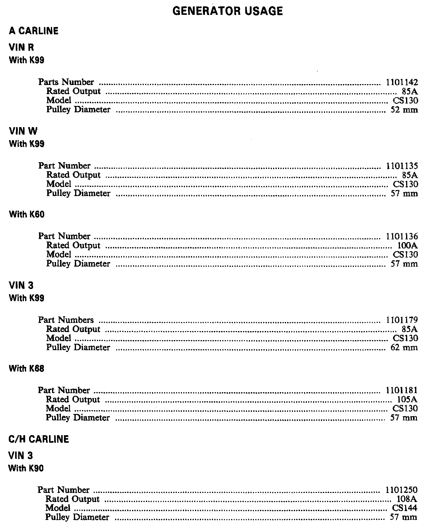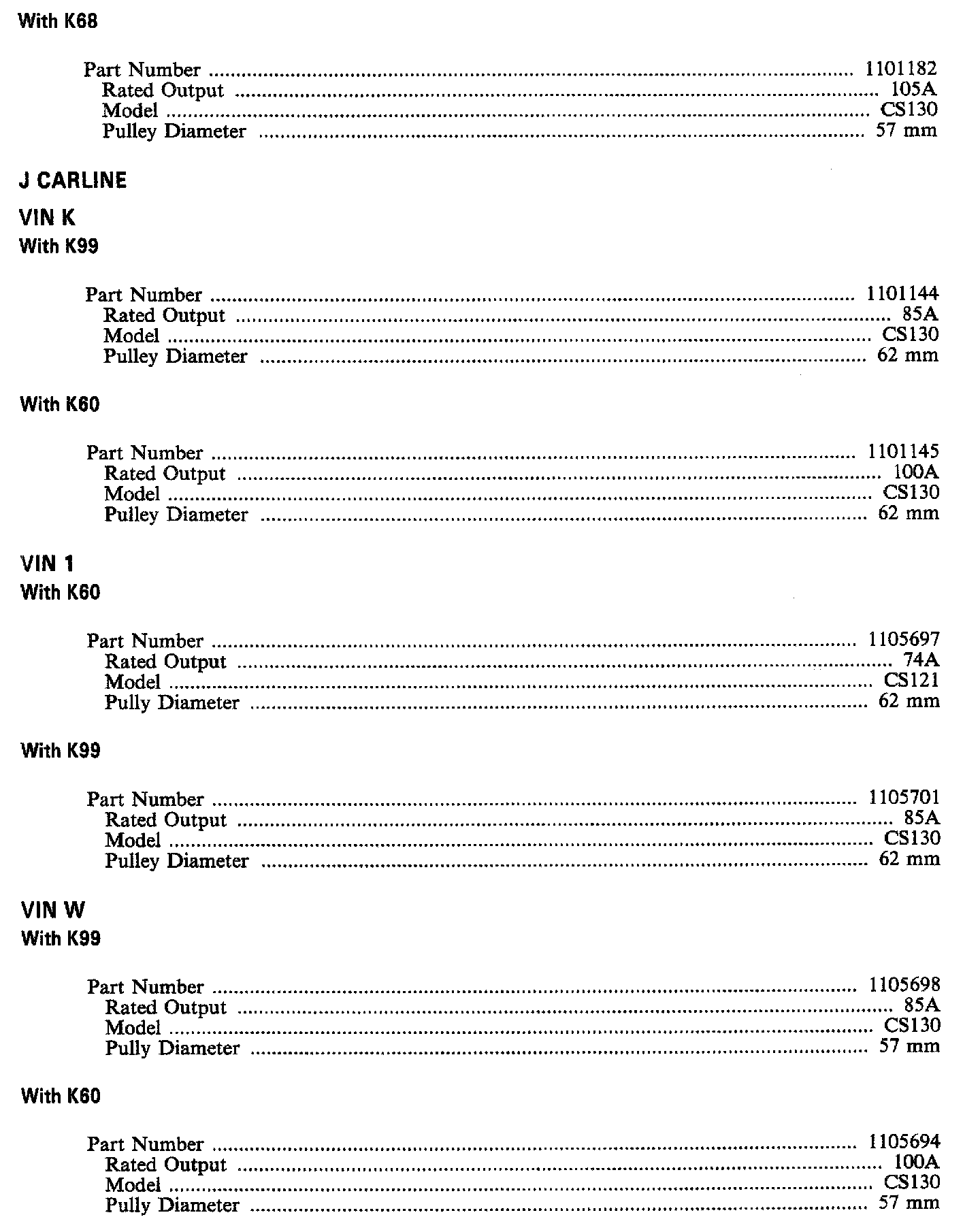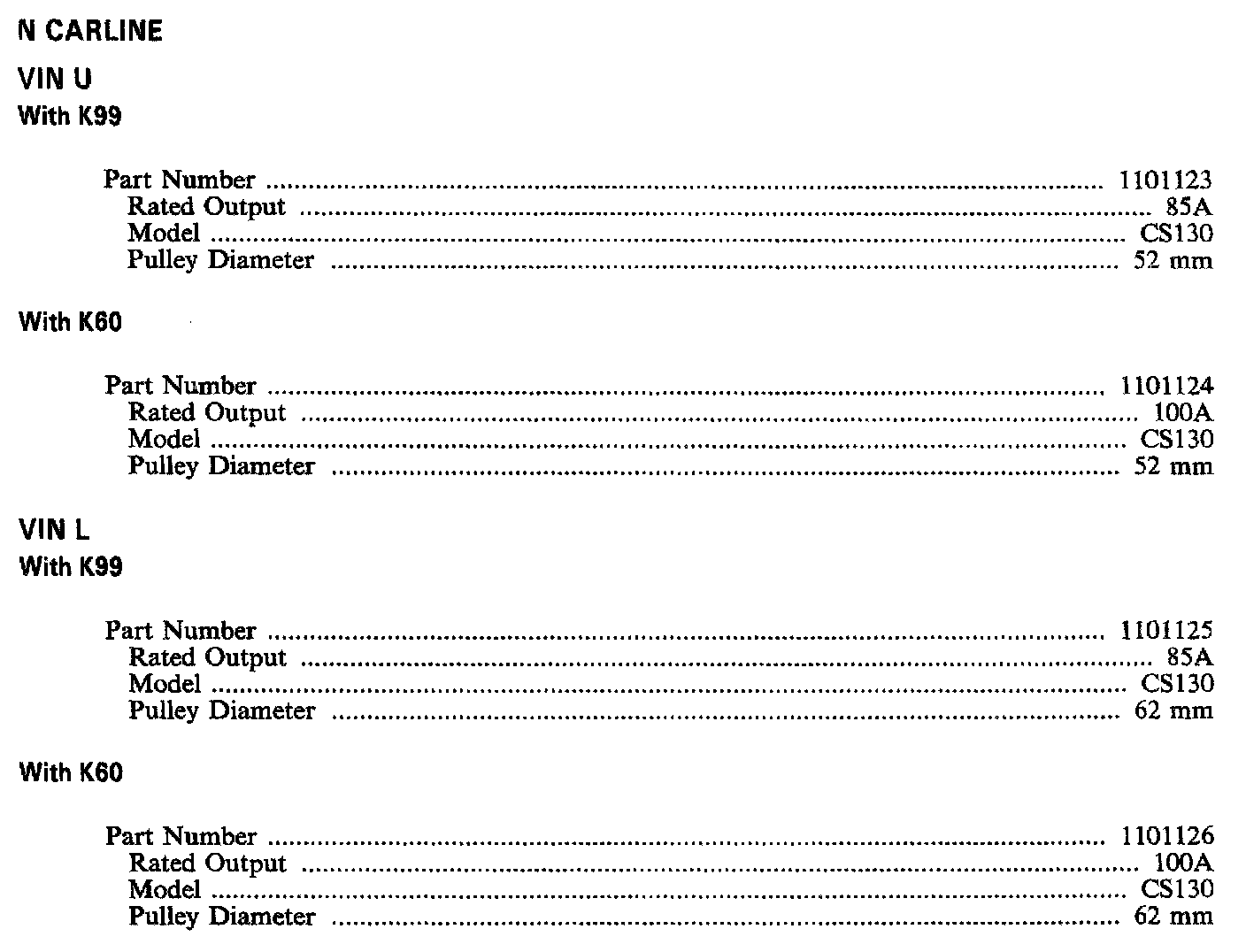 ALTERNATOR SPECIFICATIONS