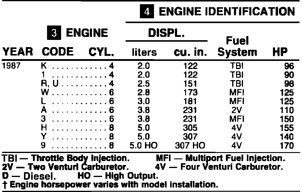 Engine Identification - 1987: