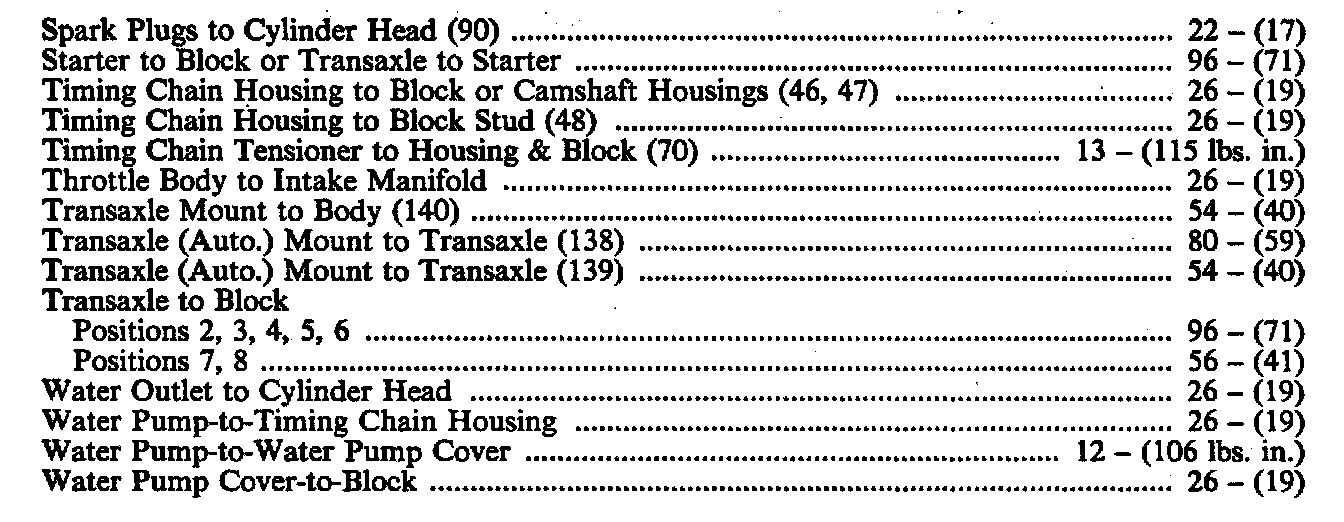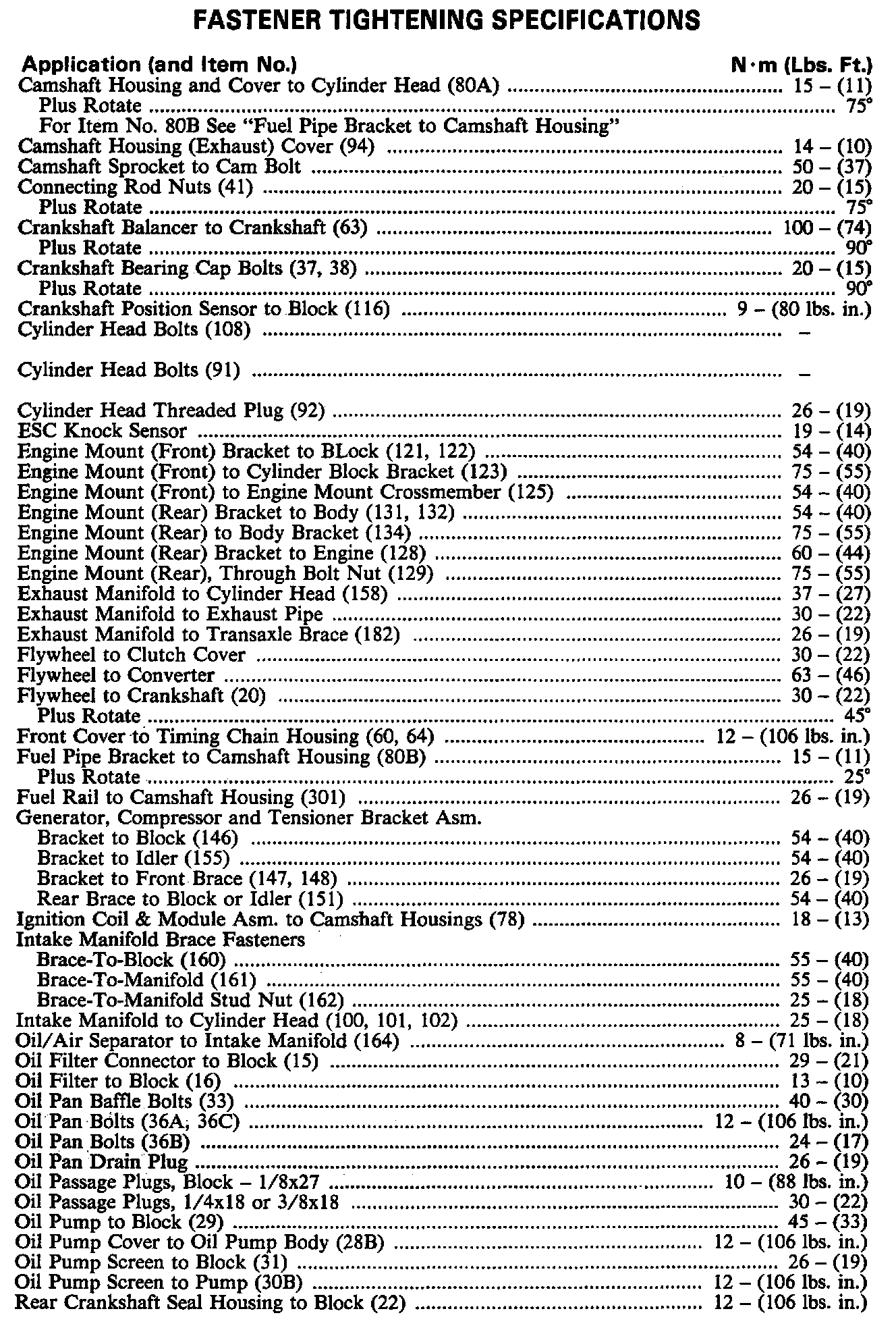 Torque Specifications:
