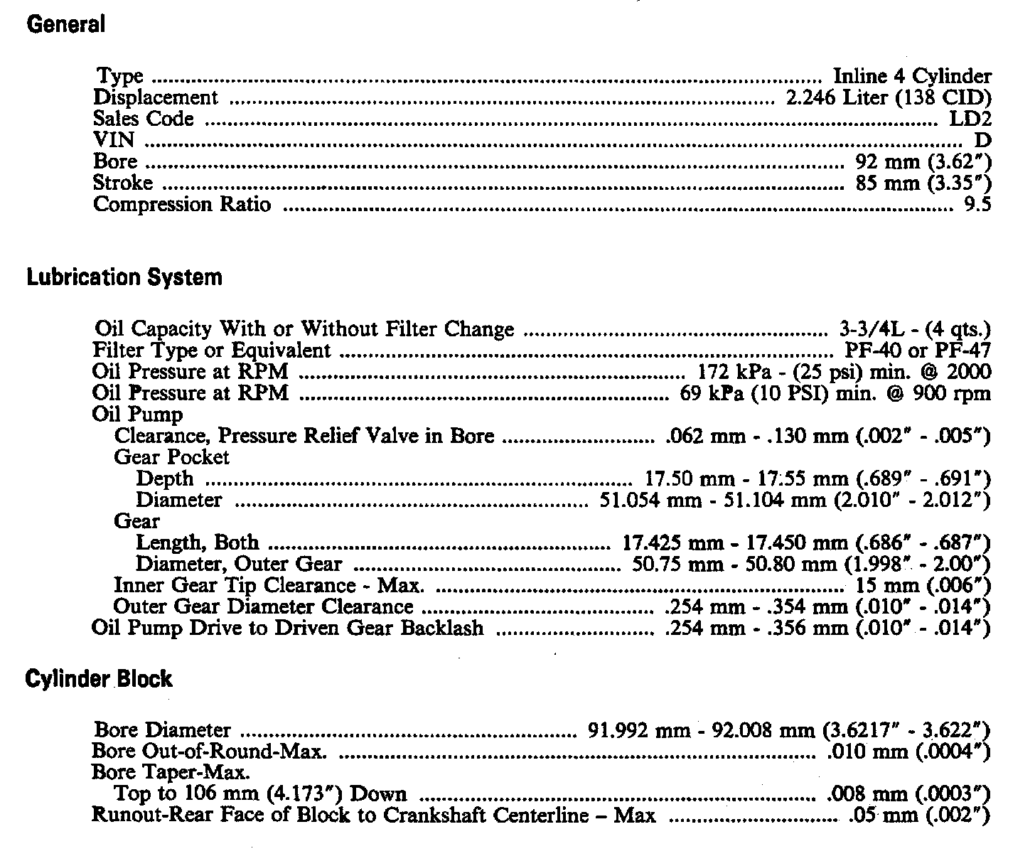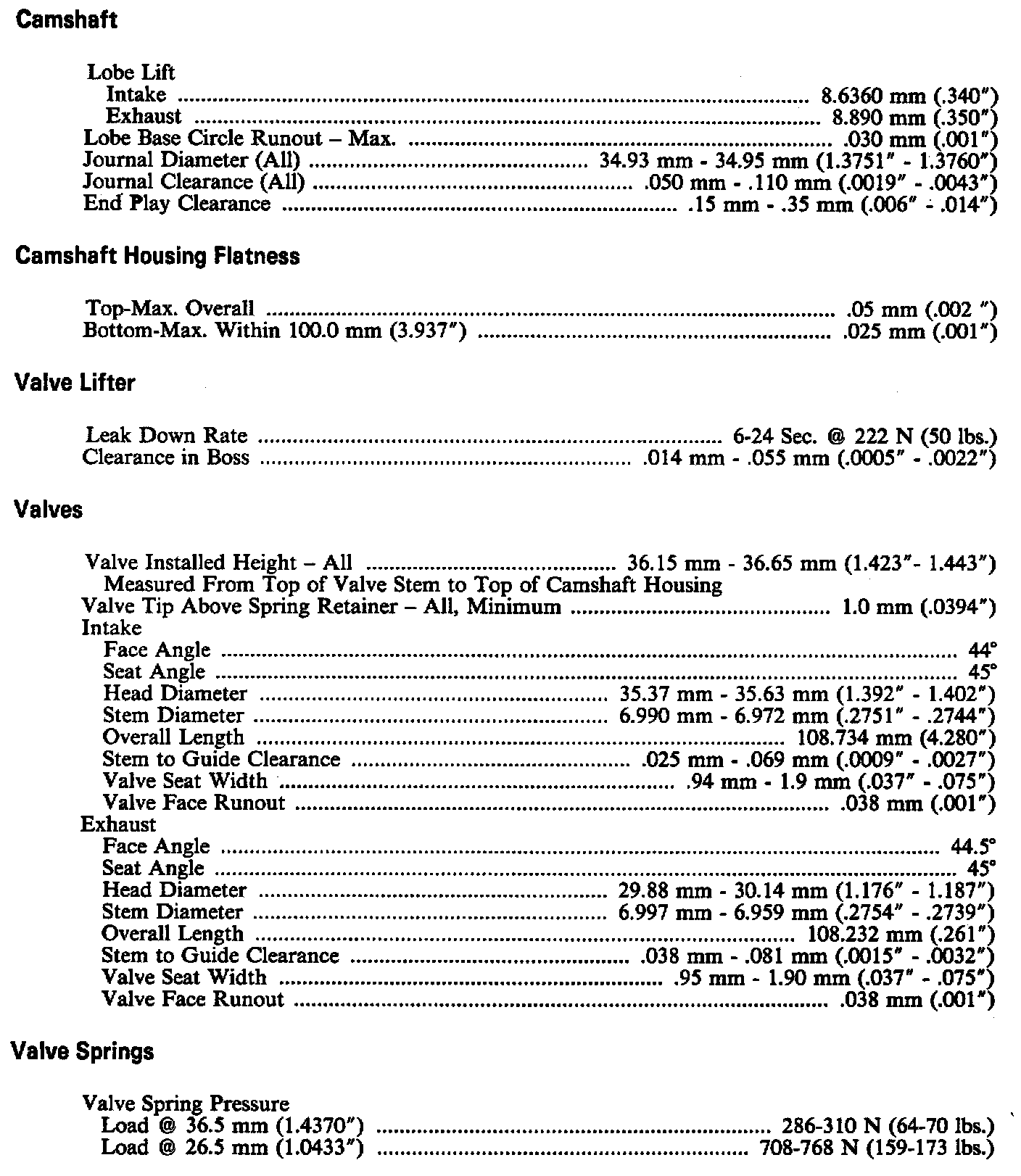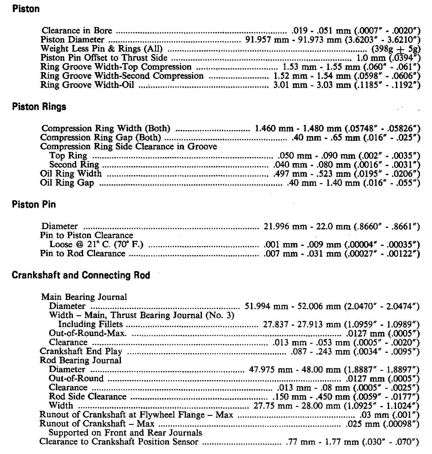 Engine Specifications: