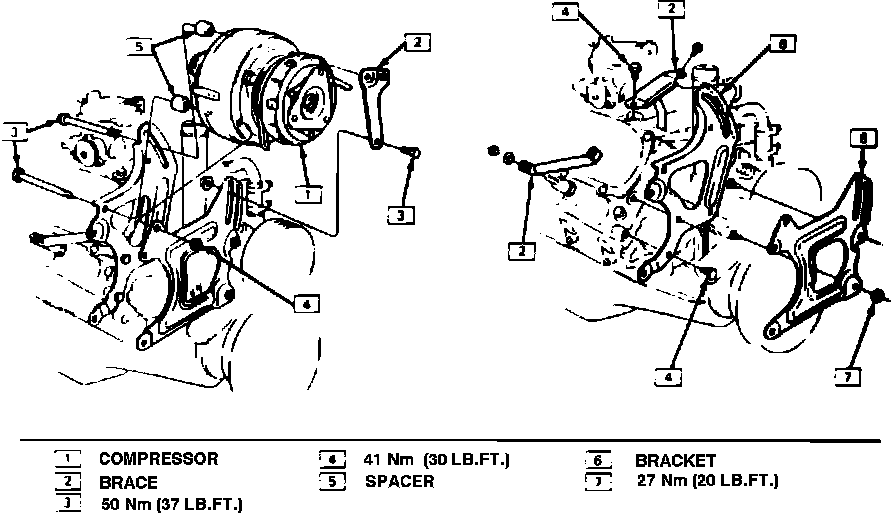 Fig. 8 Compressor mounting. Custom Cruiser, Estate Wagon, Caprice & Monte Carlo w/V8 engine: