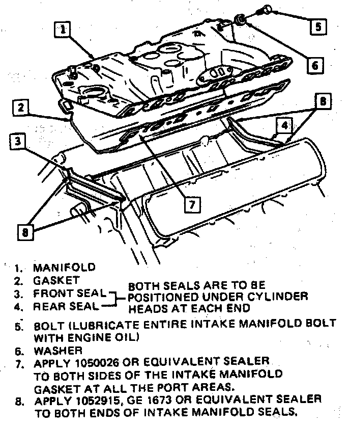 1. Apply 1050026 sealer or equivalent to both sides of the manifold gasket,