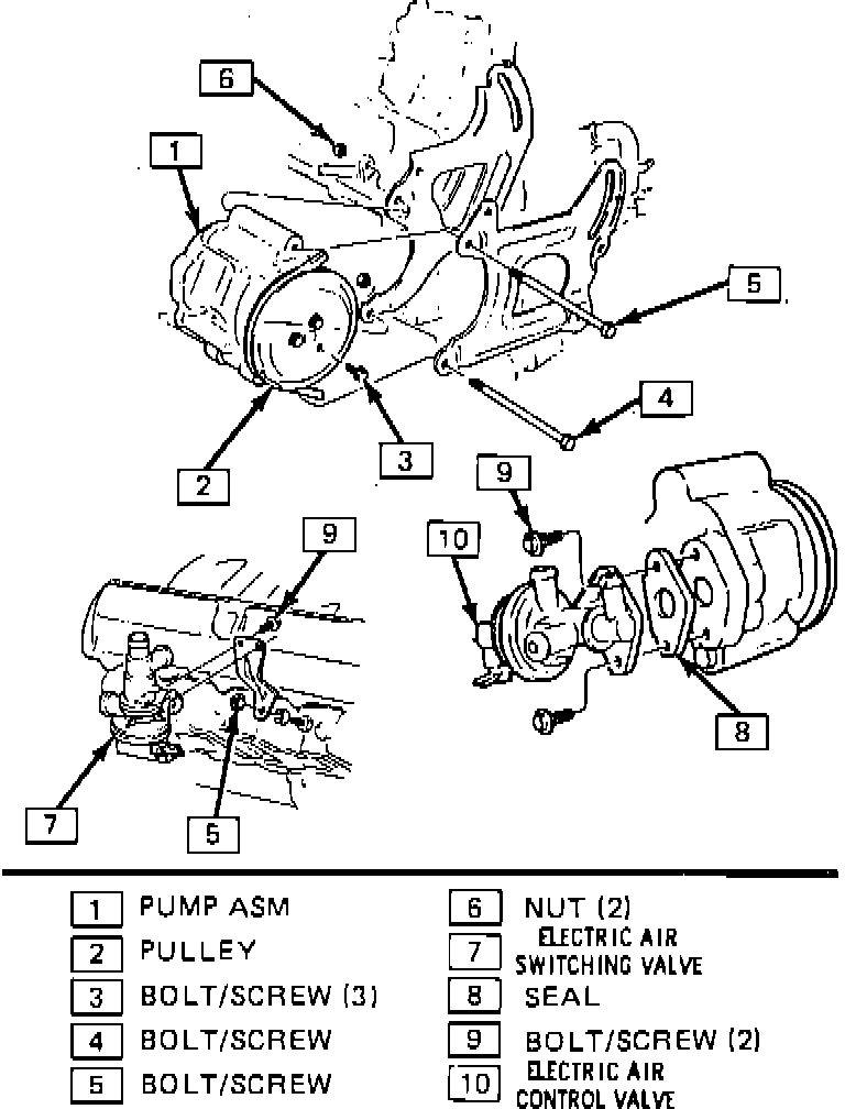 1. Install pump and tighten mounting bolts. Install hoses, electrical and vacuum connections.