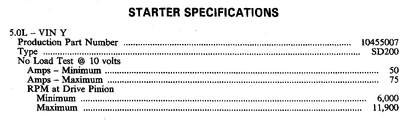 STARTER SPECIFICATIONS