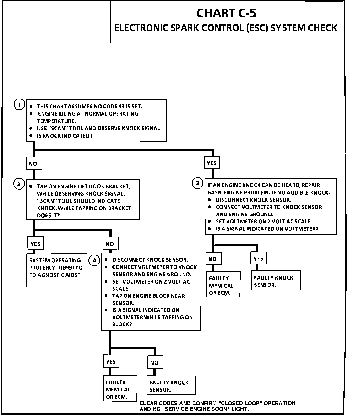 4. This test determines if the knock sensor is faulty or if the ESC portion of the Mem-Cal is faulty. If it is determined that the Mem-Cal is faulty, be sure that is is properly installed and latched into place. If not properly installed, repair and retest.
