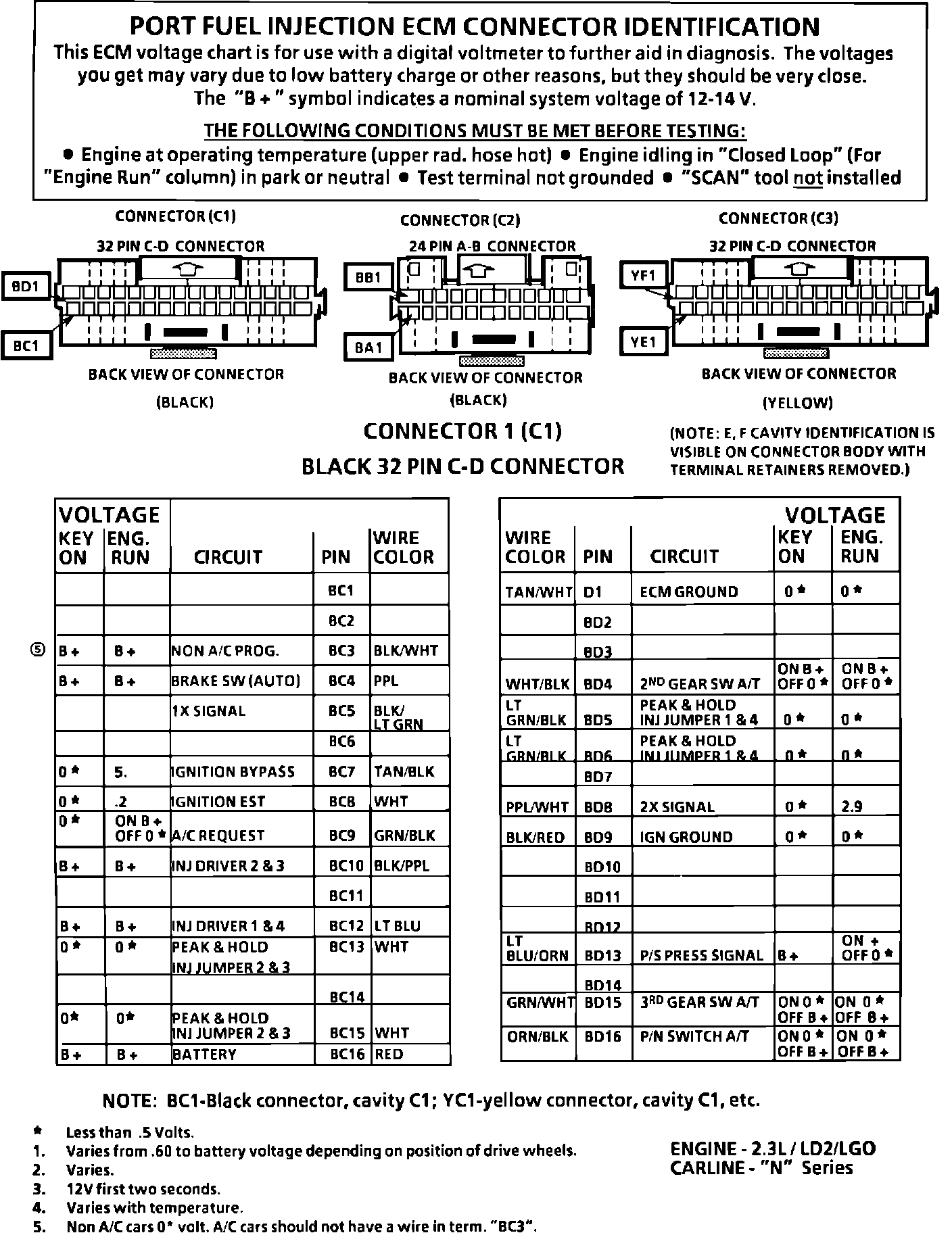 ECM Connector Terminal Identification And Voltage Specification (Part 1 Of 2):