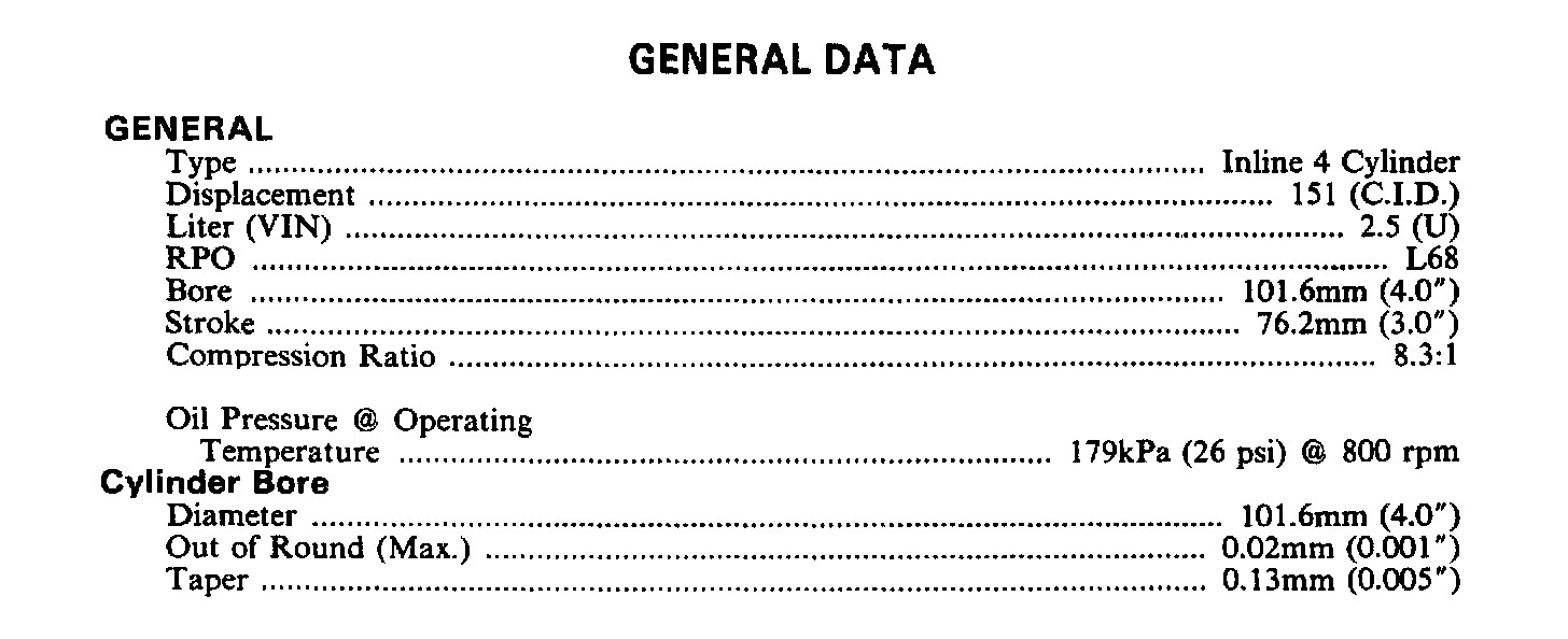 Calais L4-151 2.5L VIN U TBI